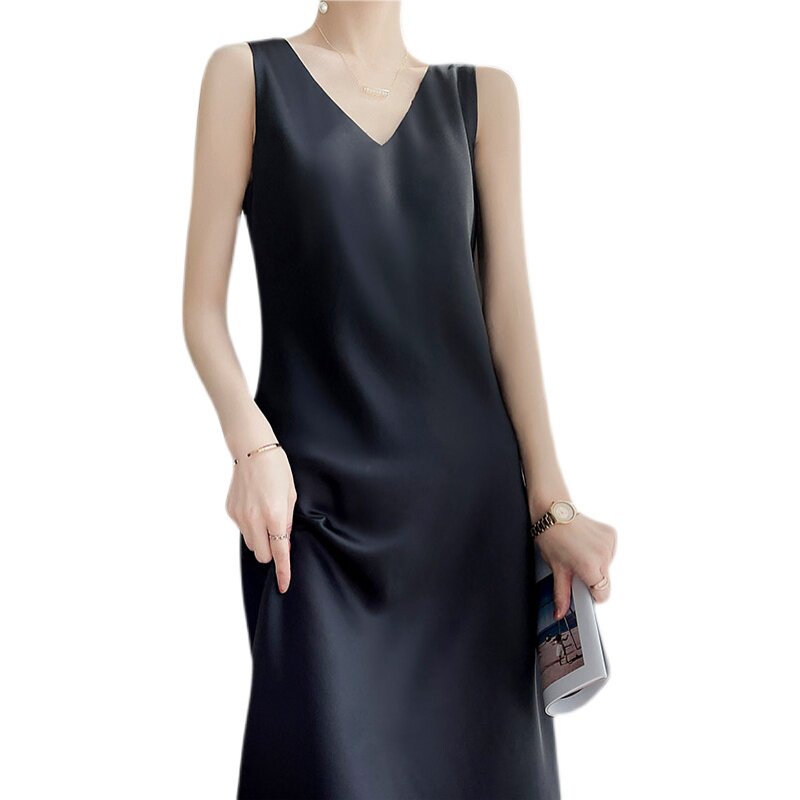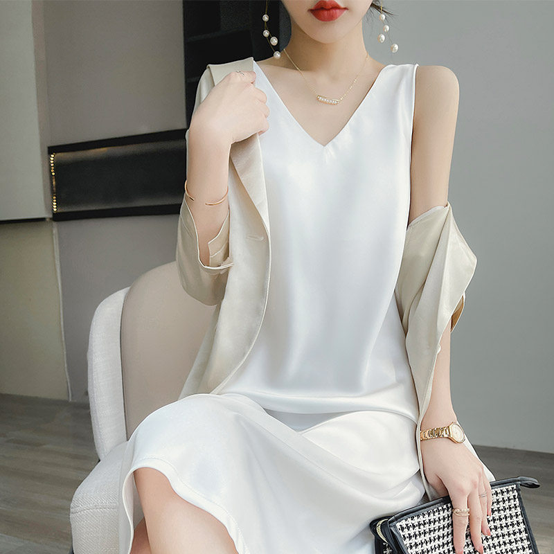 醋酸背心连衣裙女中长款夏季薄款缎面真丝配西装打底吊带裙高级感