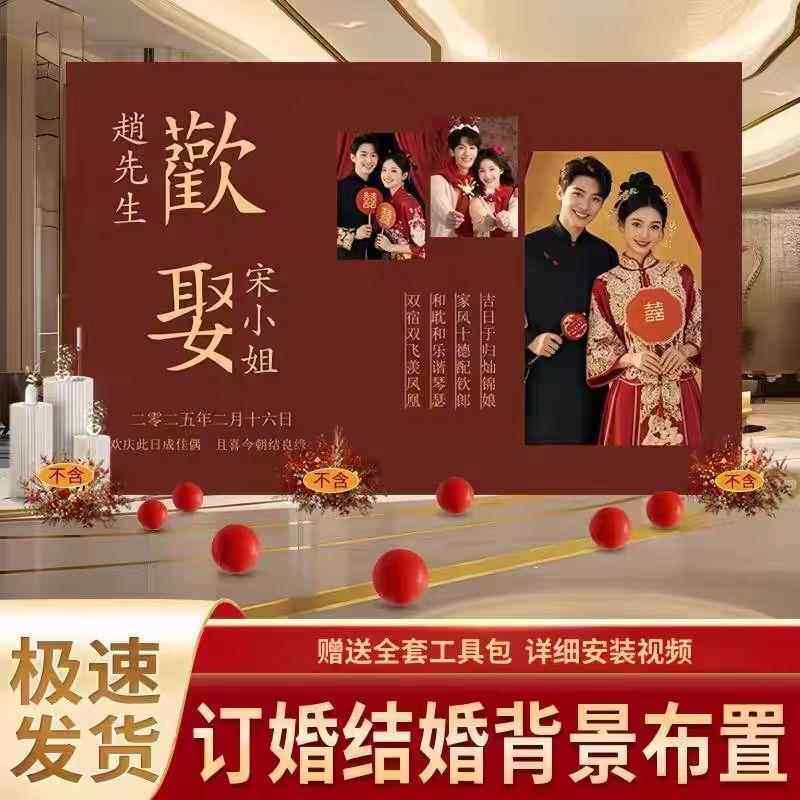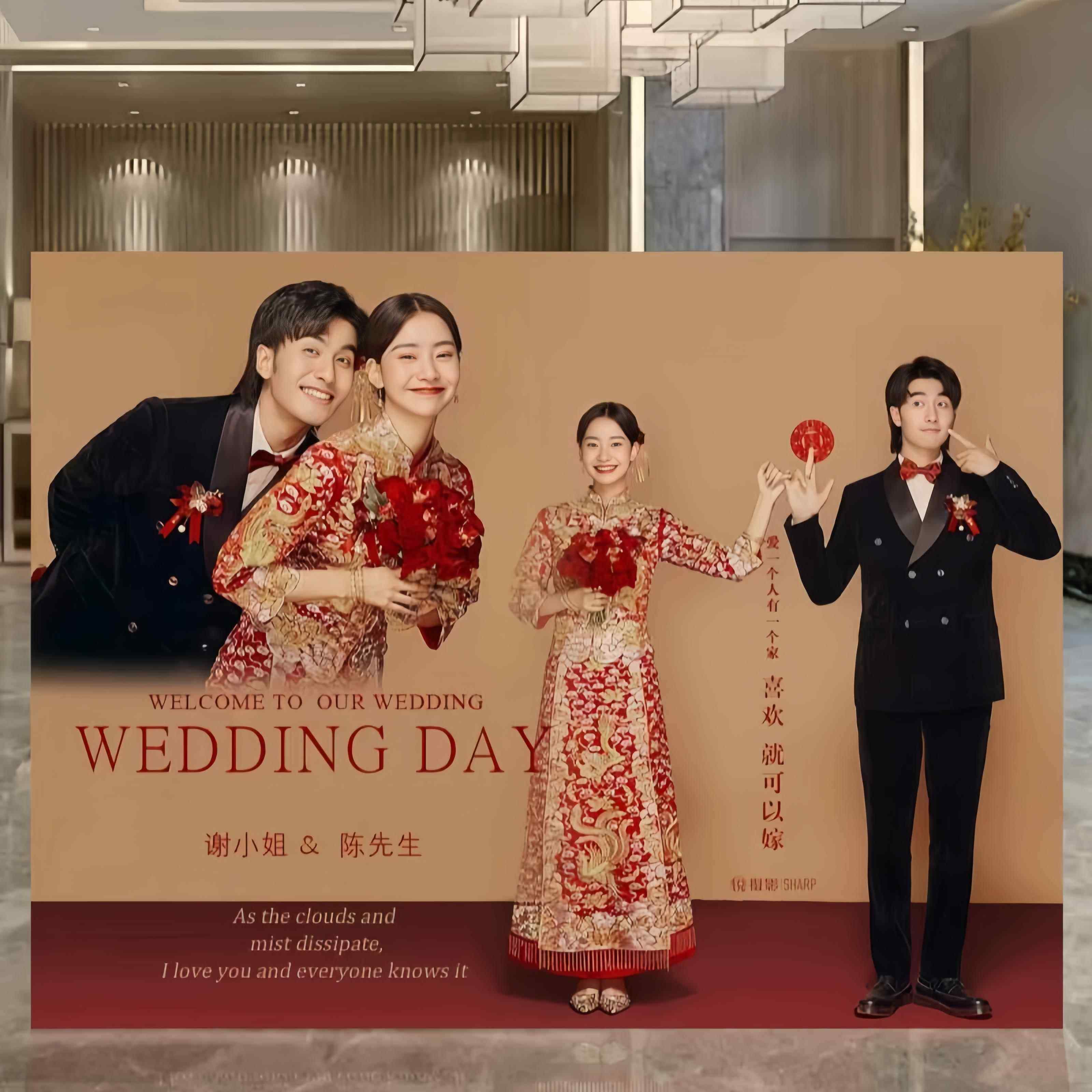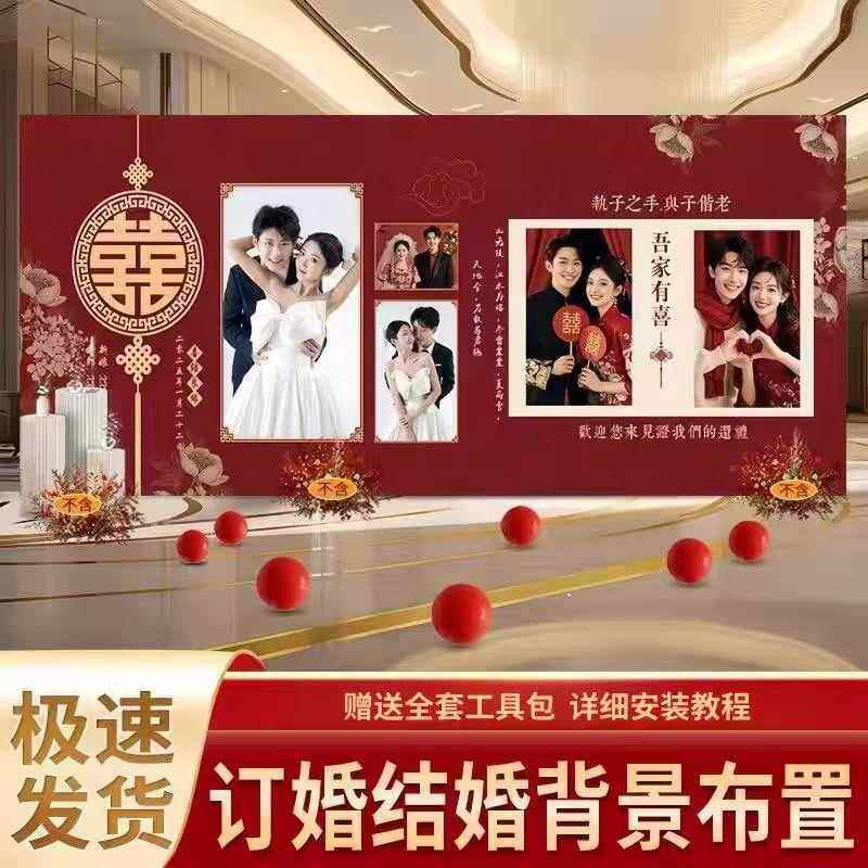 结婚迎宾留影区婚礼照片背景墙布置现场订婚宴场景装饰KT板全套