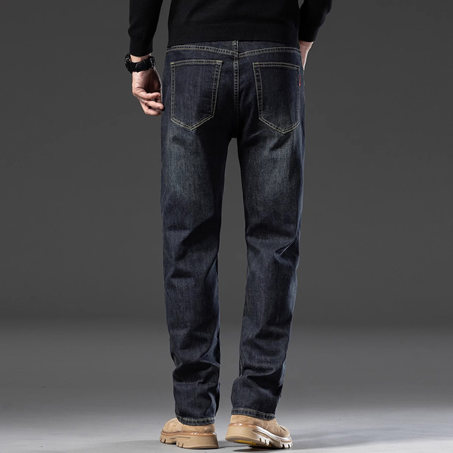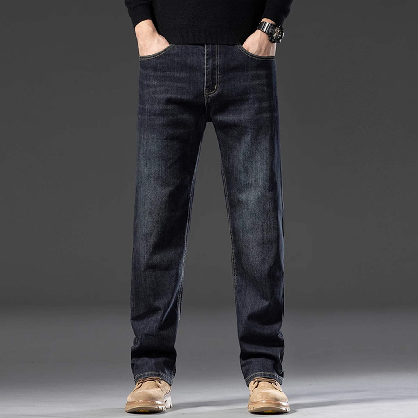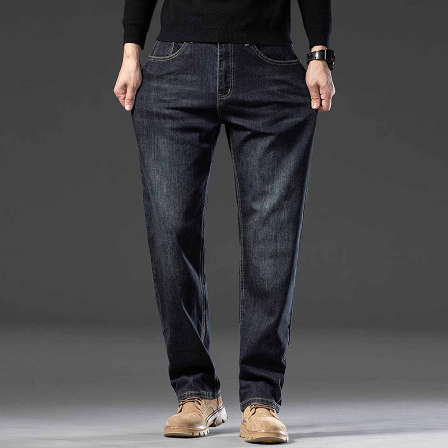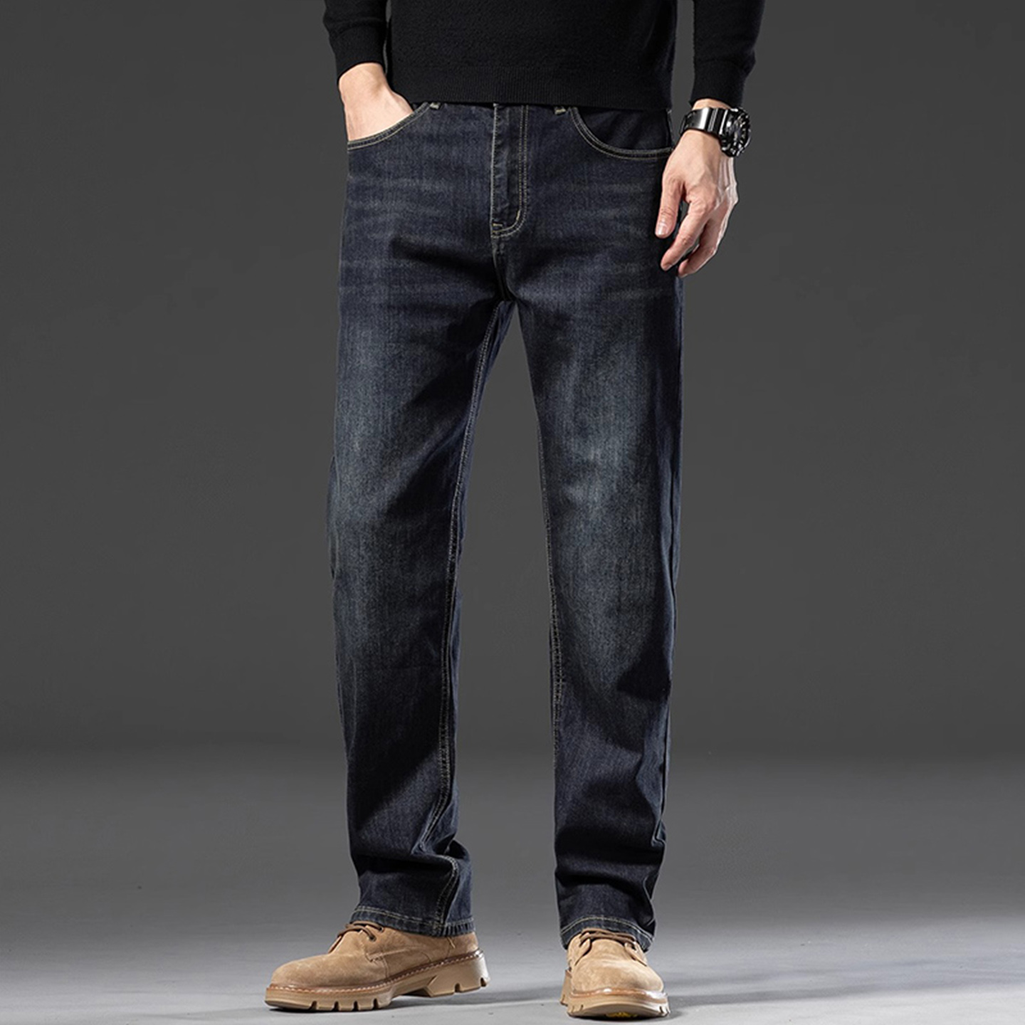 牛仔裤男2025秋季新款宽松直筒弹力高腰秋冬长裤中年男士爸爸裤子