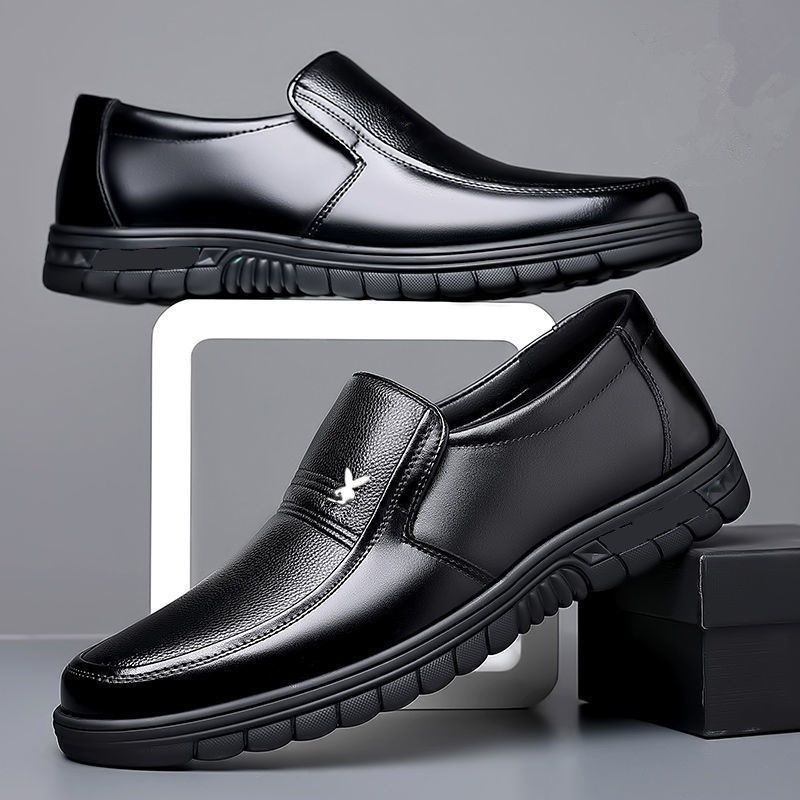 【真皮牛皮】新款男士皮鞋男商务休闲真皮软底套脚中老年爸爸鞋子