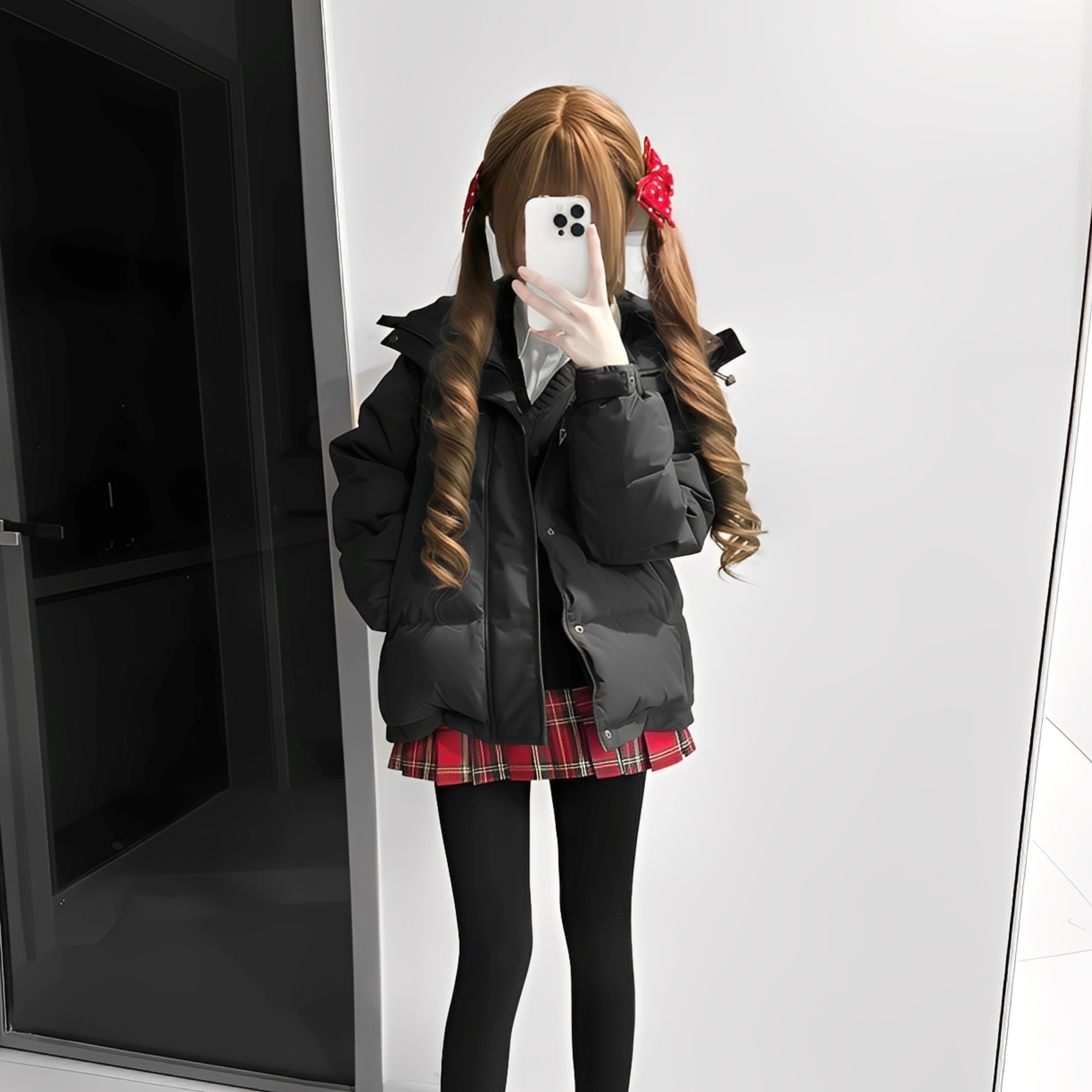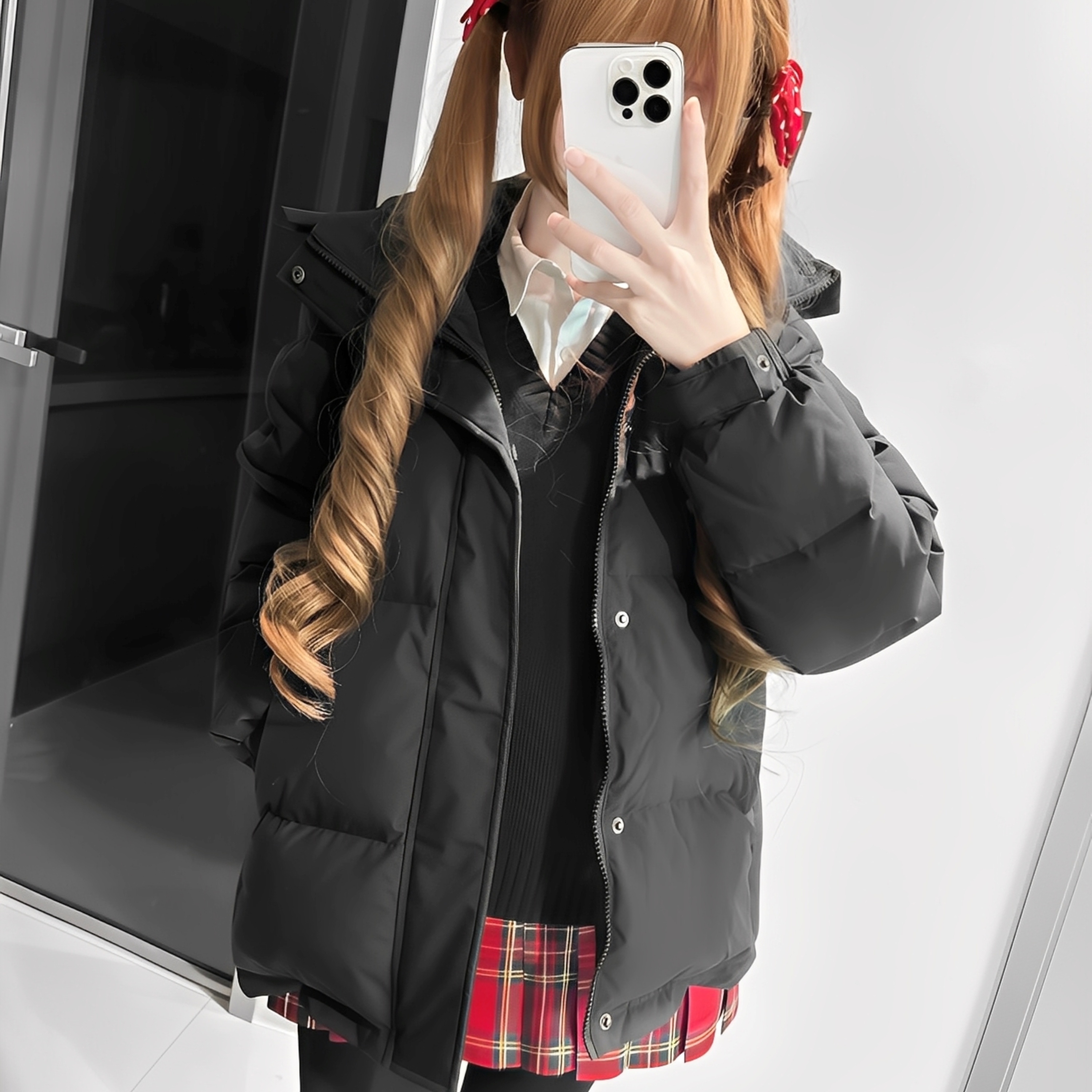 冬季2025新爆款黑色羽绒棉服女学院风小个子加厚棉衣棉袄宽松外套