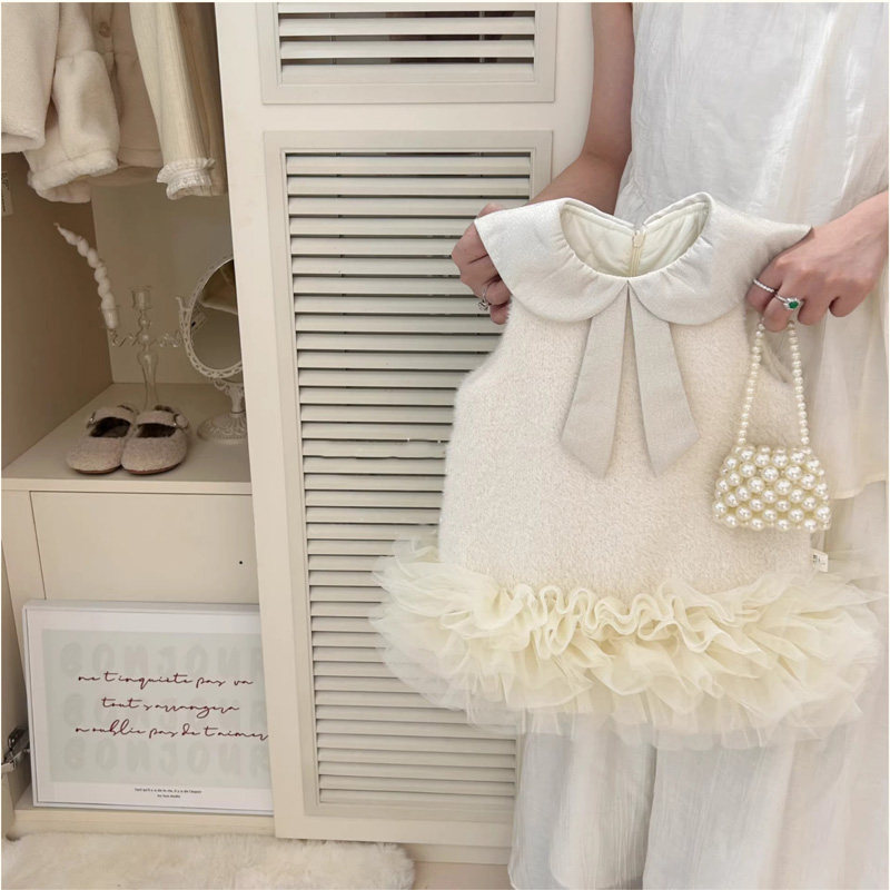 婴幼儿女童小香风连衣裙秋冬新款宝宝夹棉加厚毛呢背心裙小童公主