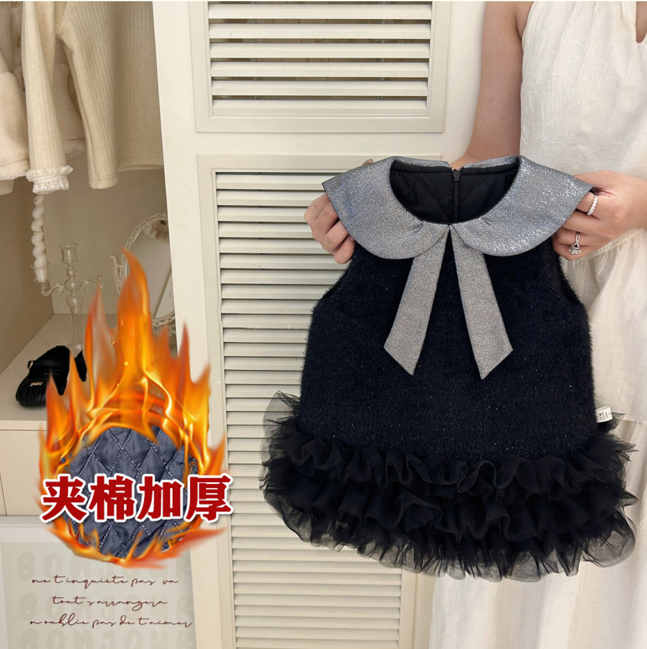 秋冬女童小香风夹棉加厚背心裙