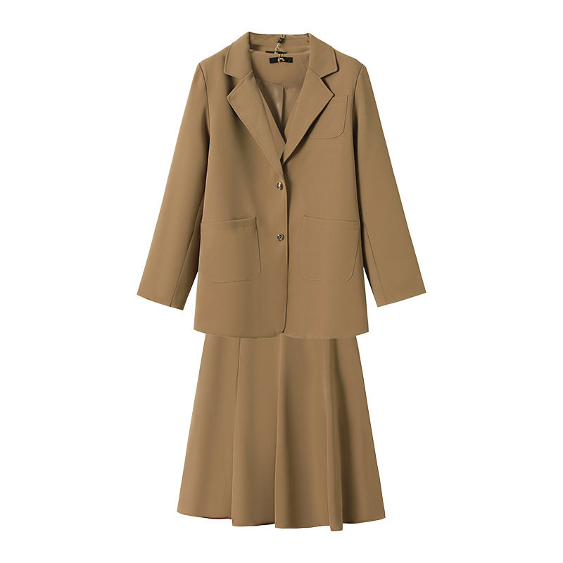 加肥加大秋冬西装马甲半身裙套装