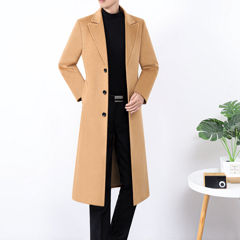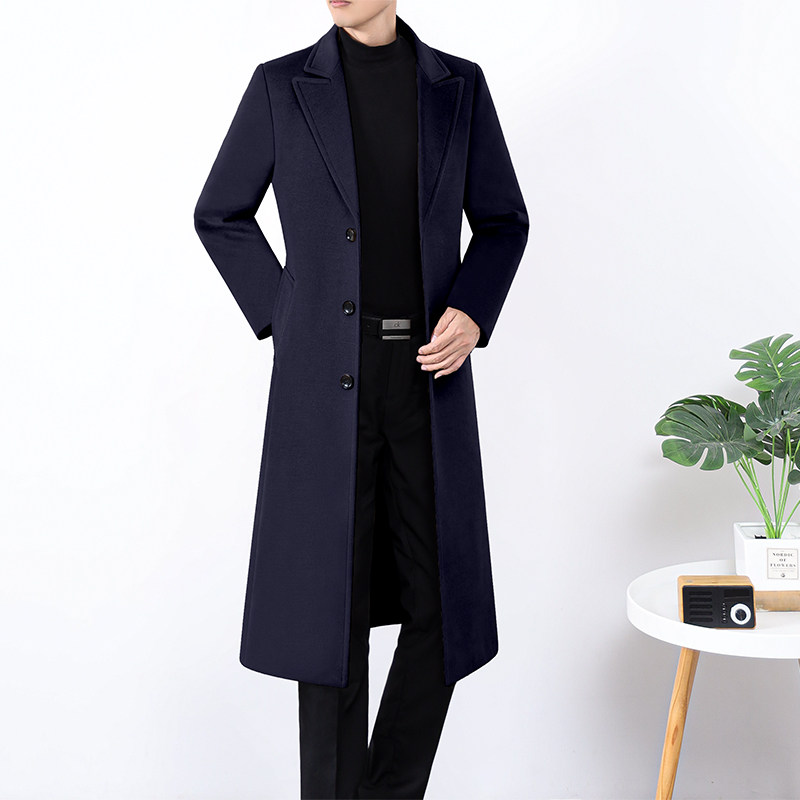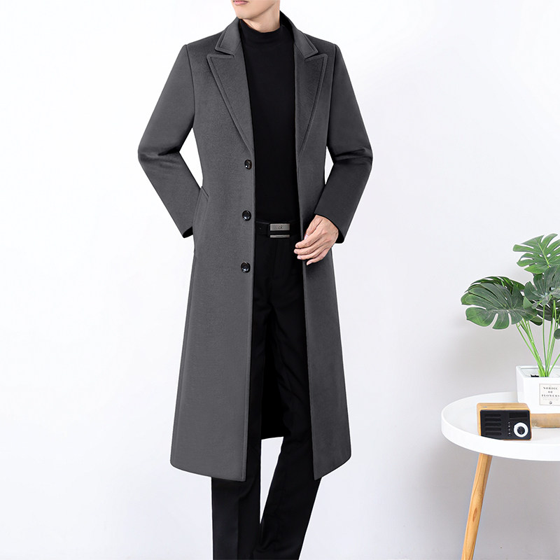 新秋冬男装毛呢新风衣修身商务时尚外套单排扣中青年厚实休闲大衣