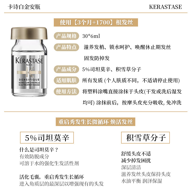 保税卡诗白金安瓶赋活浓密丰厚新发增粗生发液细软稀疏30支*6ml