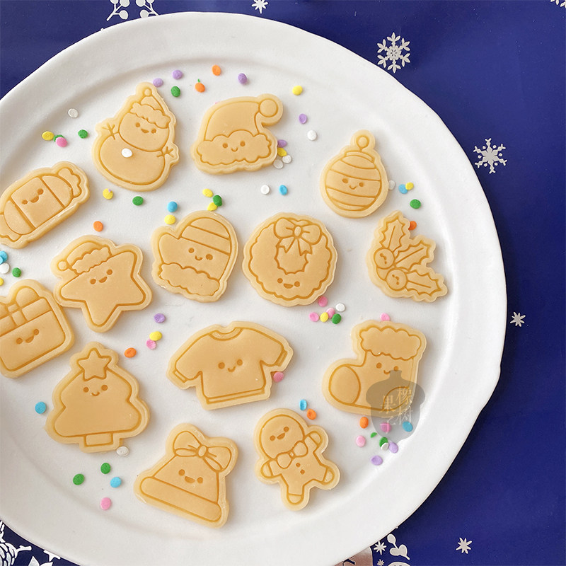 韩式圣诞小星星礼物花环袜子毛衣雪人圣诞树家用立体按压饼干模具