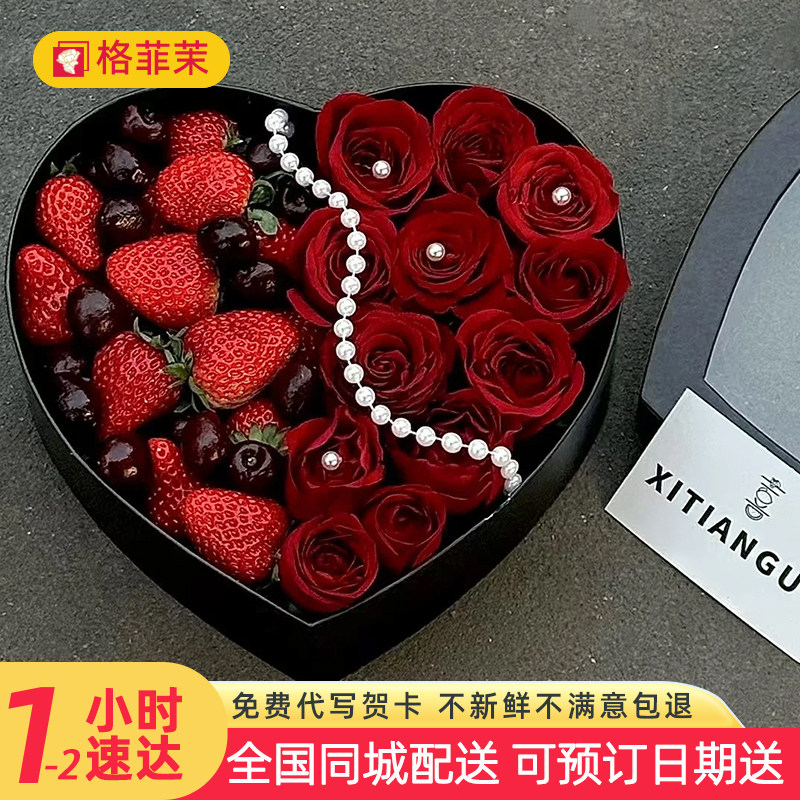 玫瑰水果礼盒花束鲜花速递同城配送长辈生日乔迁成都杭州深圳花店