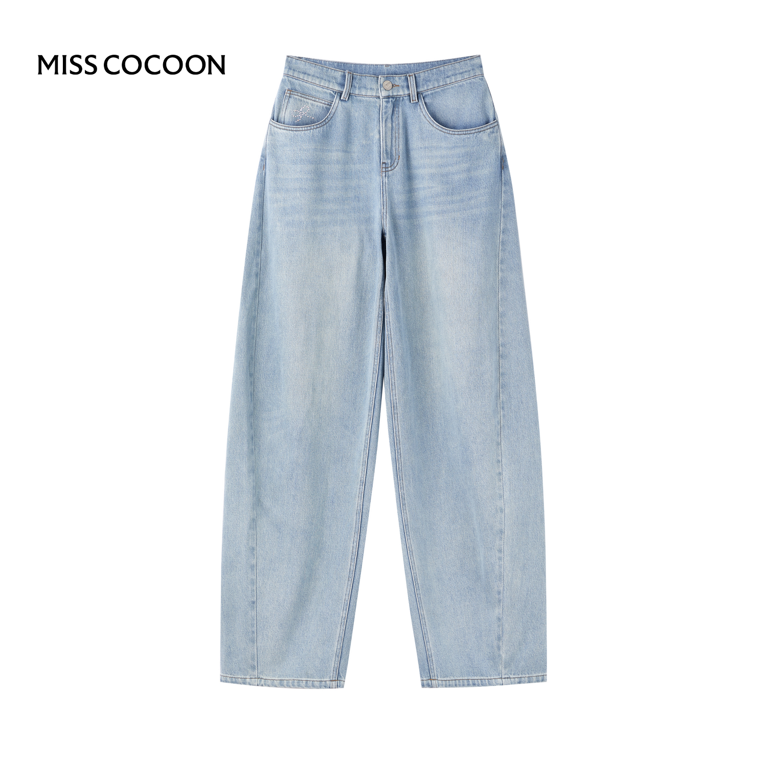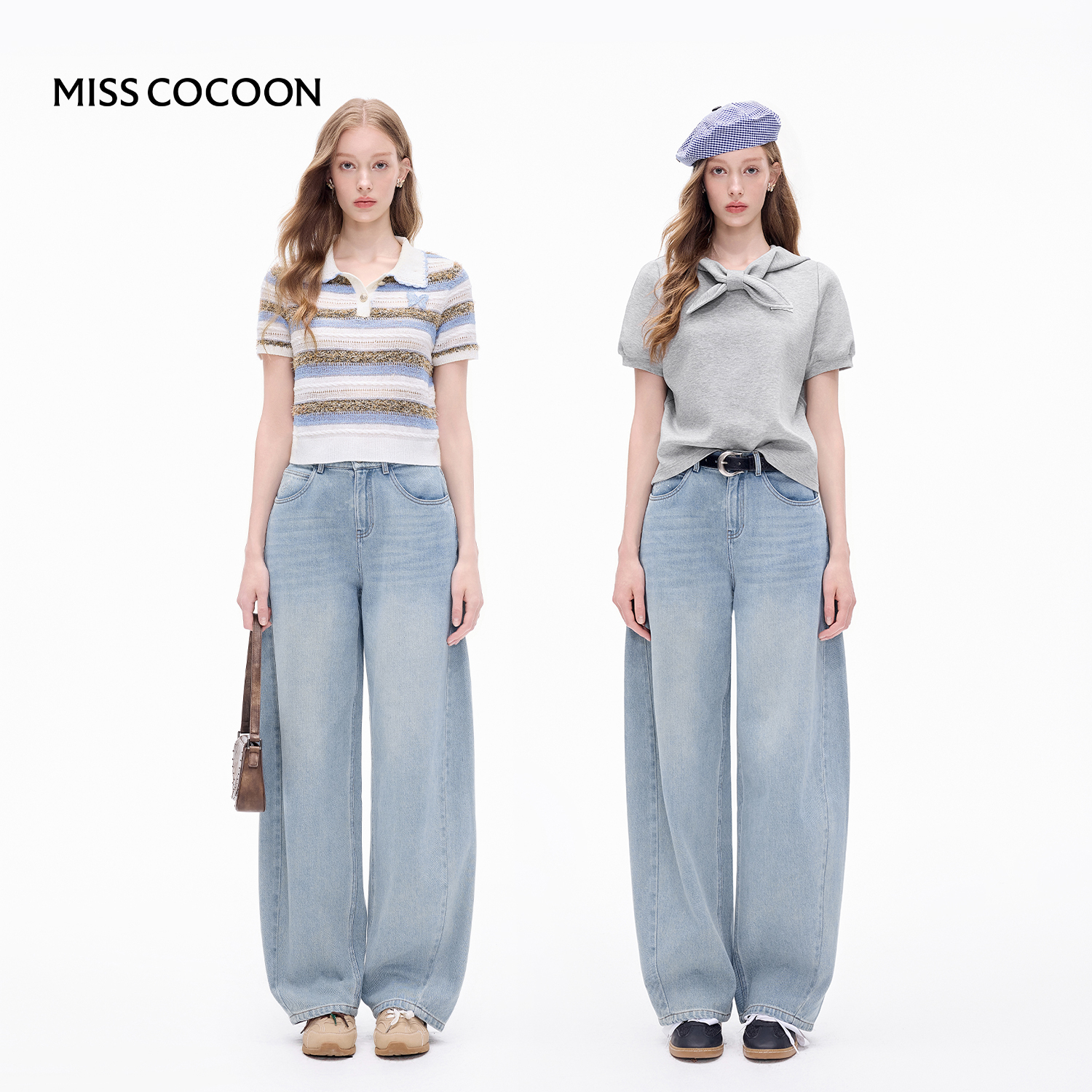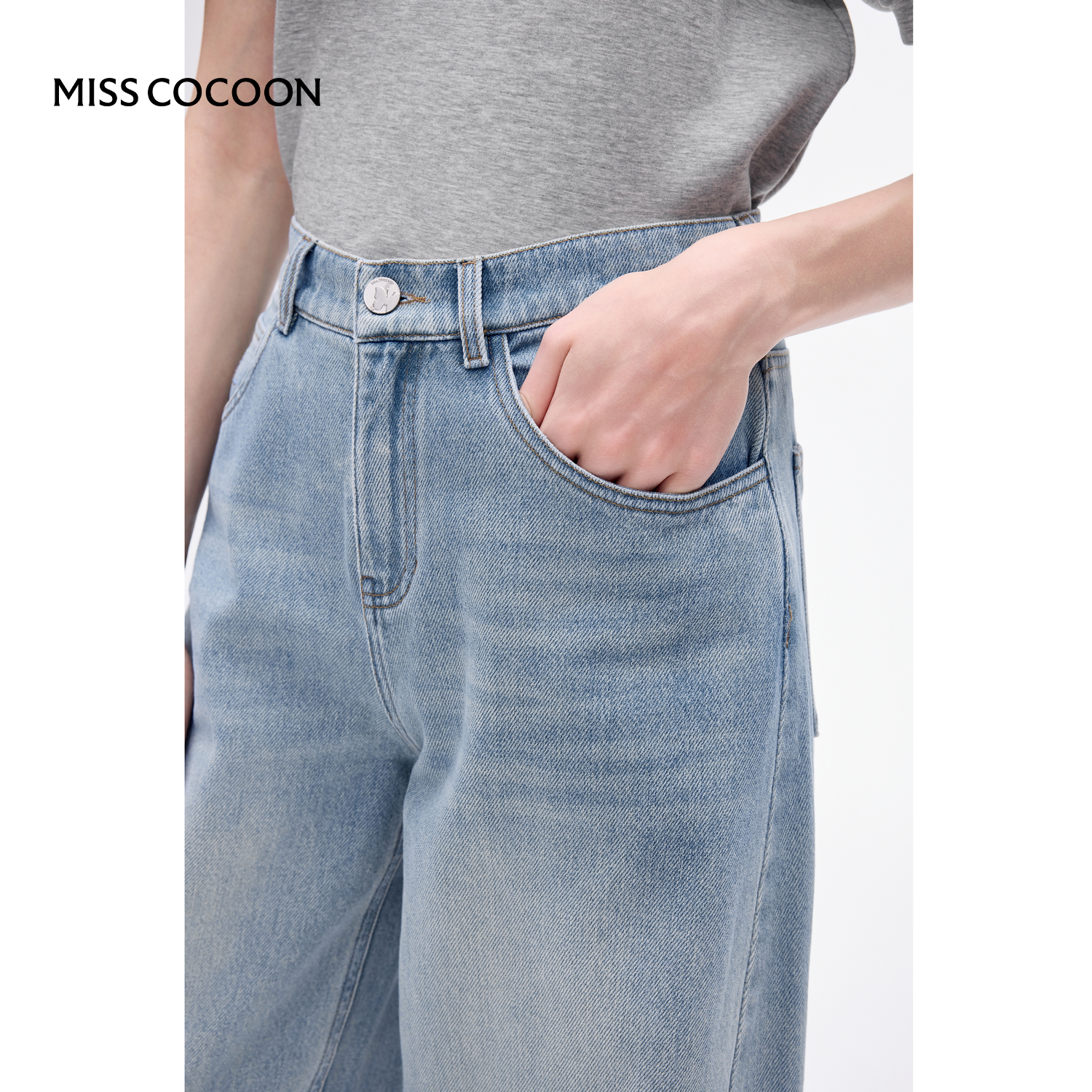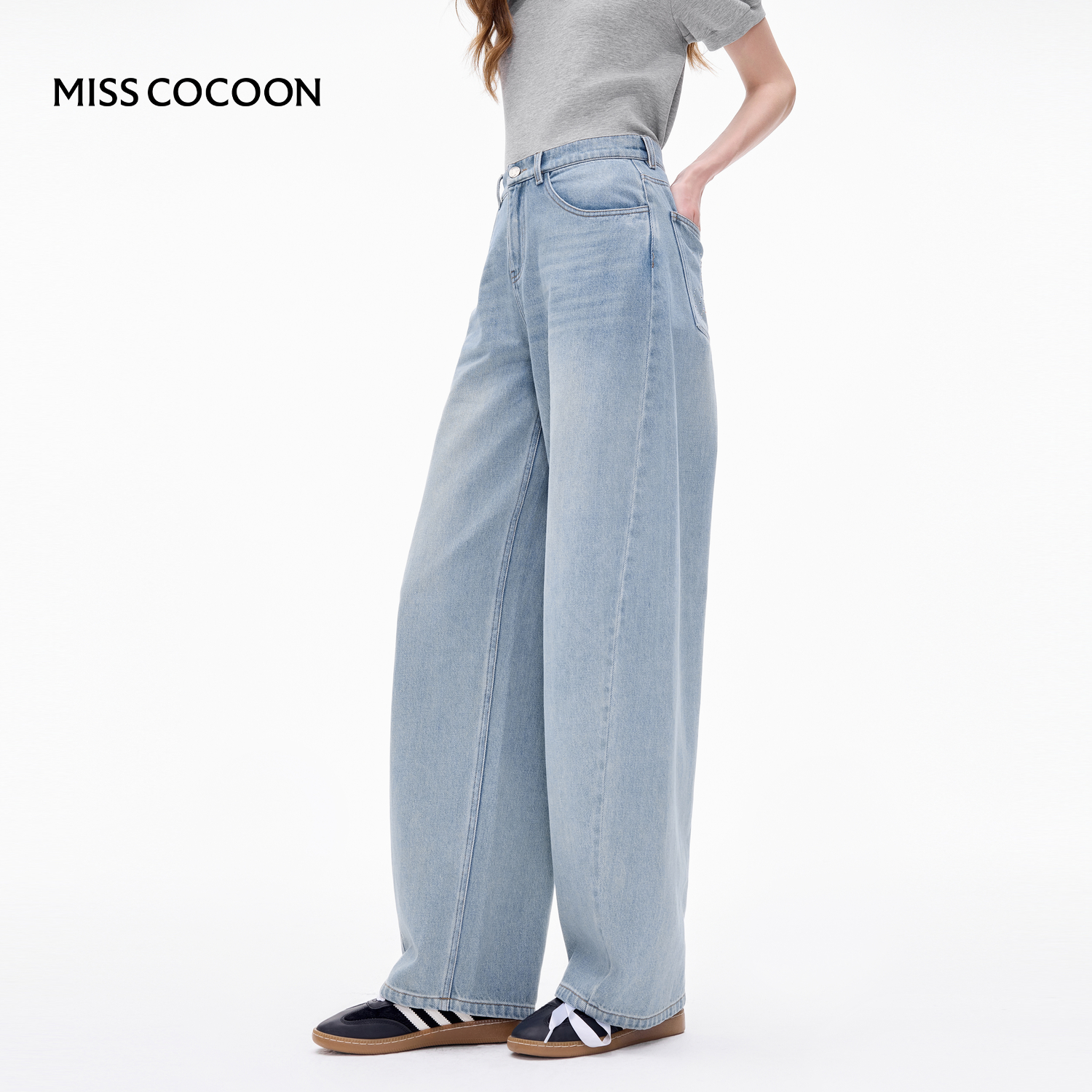 MISSCOCOON可可尼水洗蓝弯刀裤女2025秋季新款阔腿宽松纯棉牛仔裤