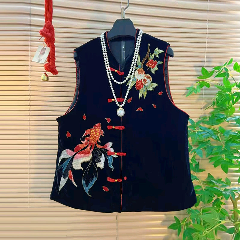 长袖小衫盘扣刺绣图案国风马甲