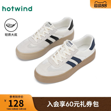 热风男鞋2025年秋季新款男士网面休闲鞋厚底透气德训鞋男款板鞋子