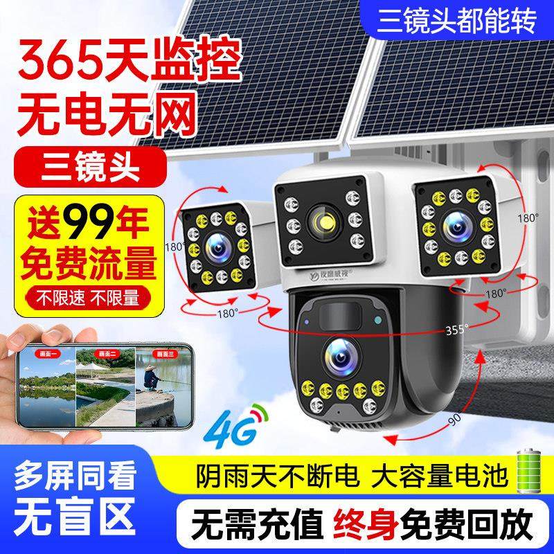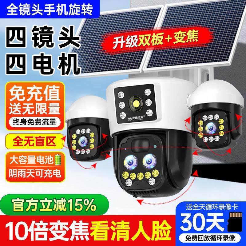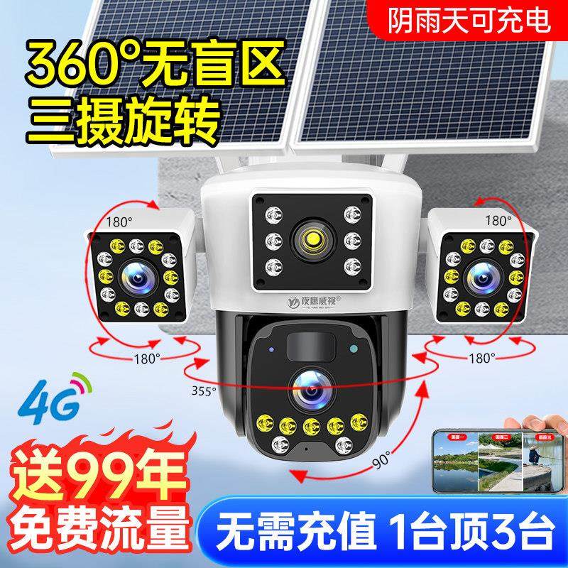太阳能摄像头监控器户外360度无死角手机远程无电无网室外4G夜视