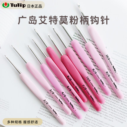 日本进口广岛玫瑰粉钩针郁金香蕾丝细款中粗毛线手工钩针工具套装