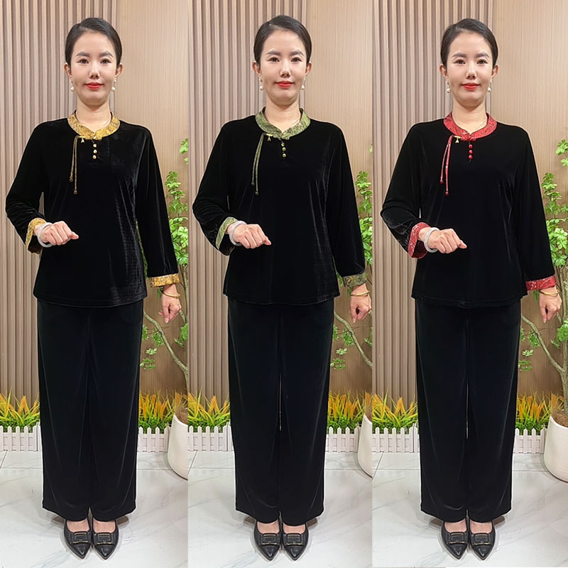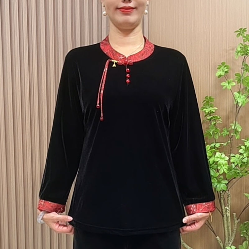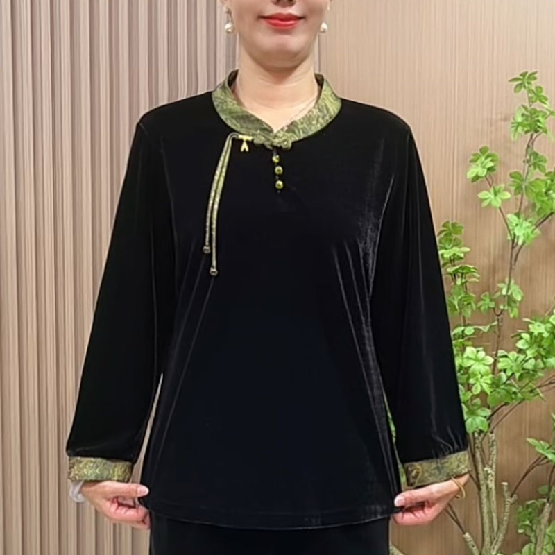 妈妈秋装国风打底衫2025新款中老年女装秋冬立领新中式百搭小衫