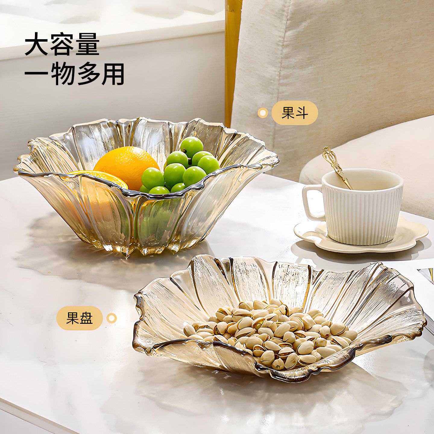 轻奢高档水晶玻璃水果盘客厅茶