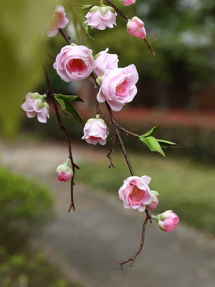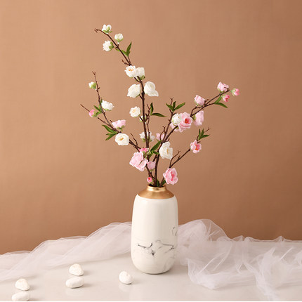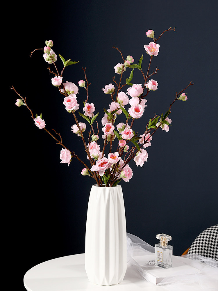 仿真桃花单支假树枝客厅摆件装饰腊梅花绢布塑料干花樱花餐桌摆设