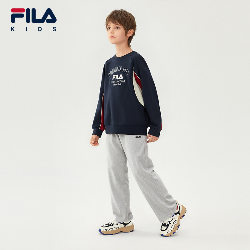FILA斐乐儿童童装长裤2025年冬季新款男童中大童休闲加绒直筒裤子