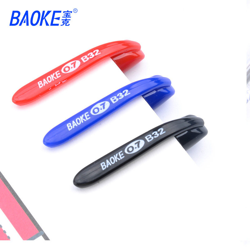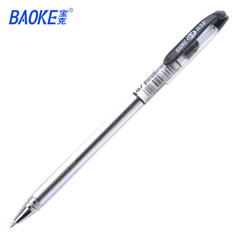 宝克中油笔书写顺滑蓝色中油笔0.7mm圆珠笔B32黑色办公学生12支装一盒红色圆珠笔透明笔壳