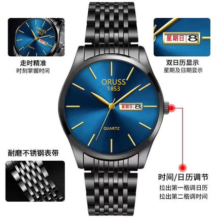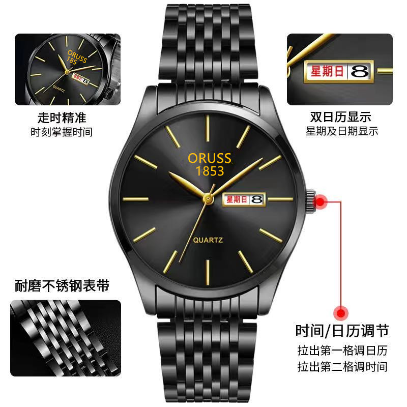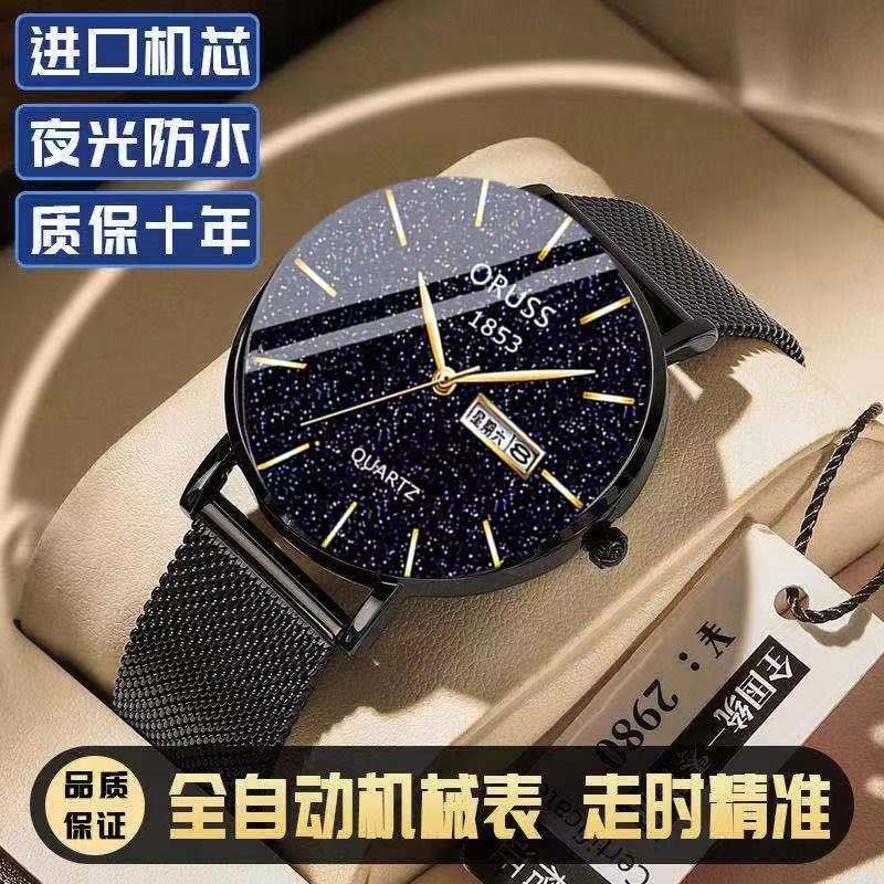 正品瑞士全自动机械男士手表韩版简约防水夜光双日历时尚机械表男