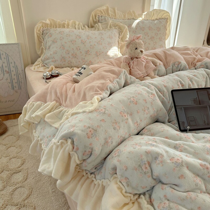 温柔风加厚牛奶绒珊瑚绒四件套