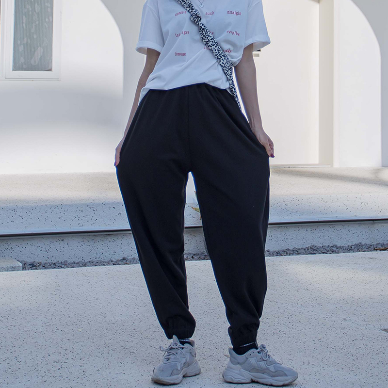 运动休闲宽松束脚卫裤女春秋九分裤哈伦裤大码阔腿裤高个子长裤