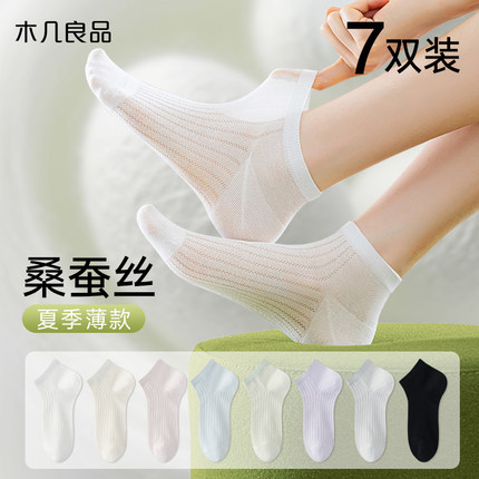 桑蚕丝袜子女夏季超薄棉袜防臭网眼透气女士短款船袜白色短袜夏天