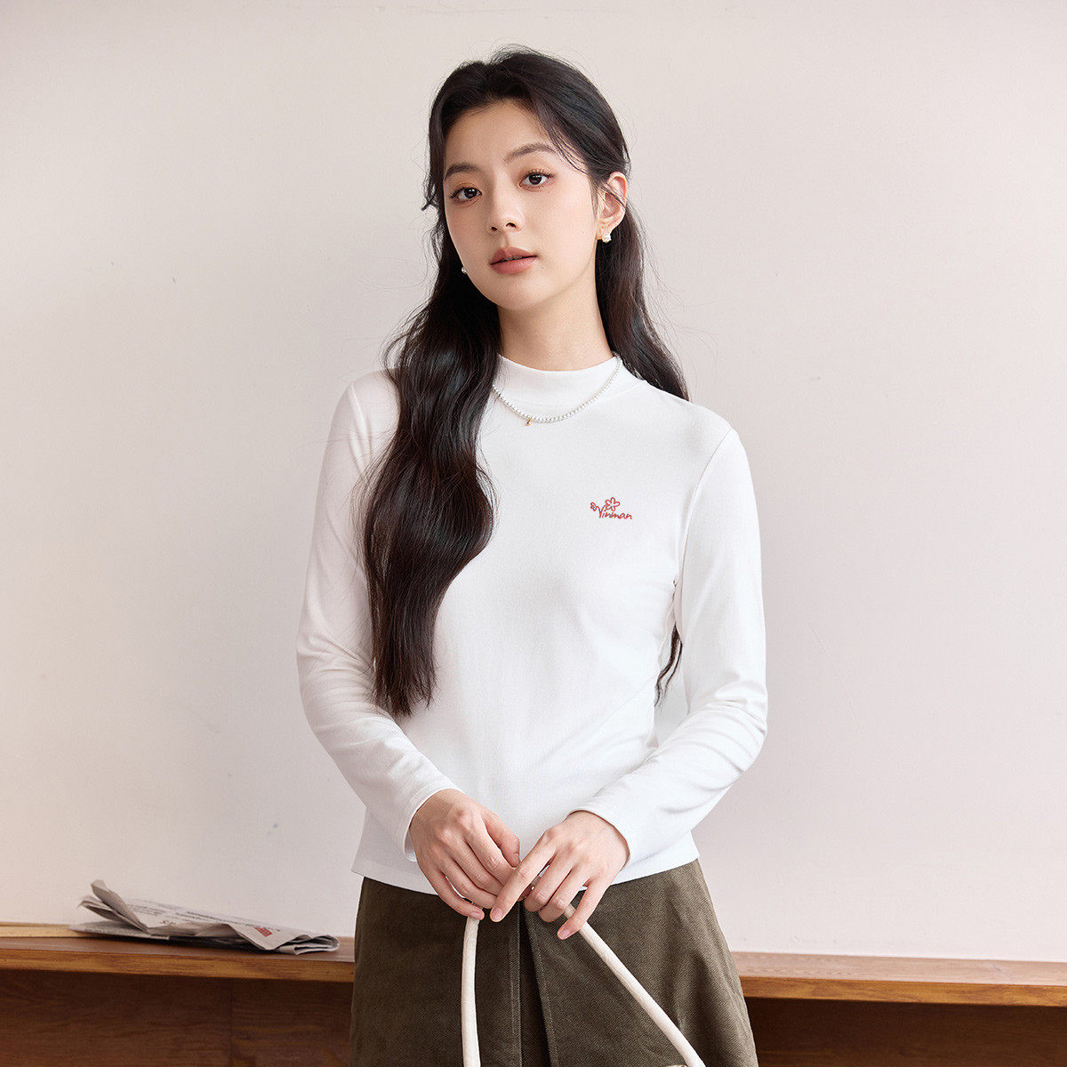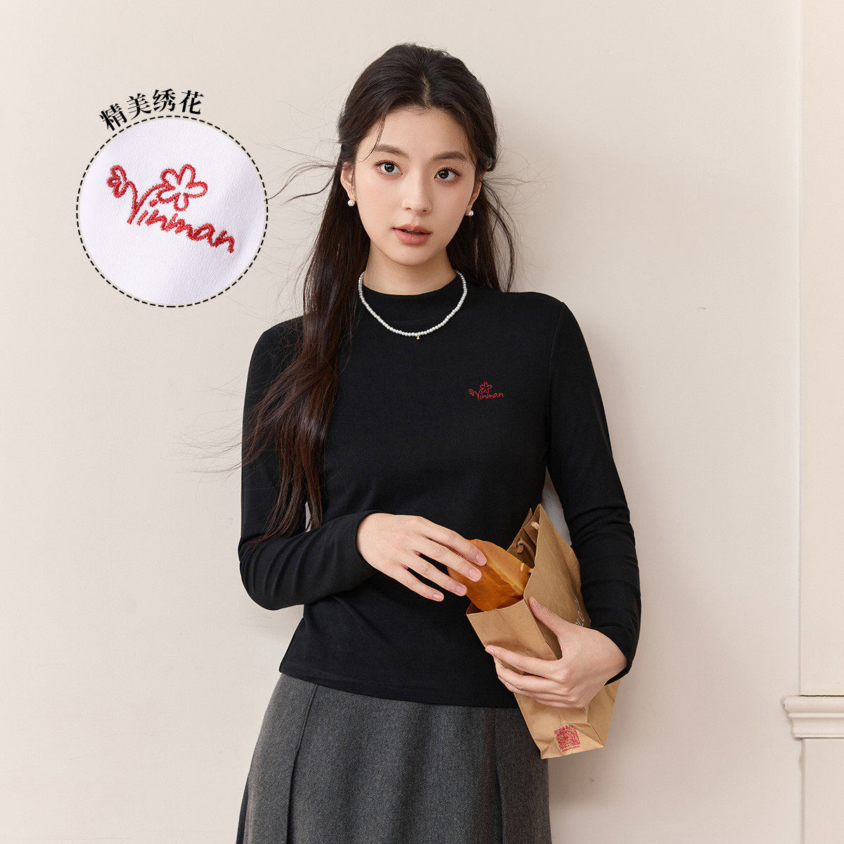 茵曼2026春季新款薄款长袖t恤女士正肩半高领内搭打底衫爆款修身