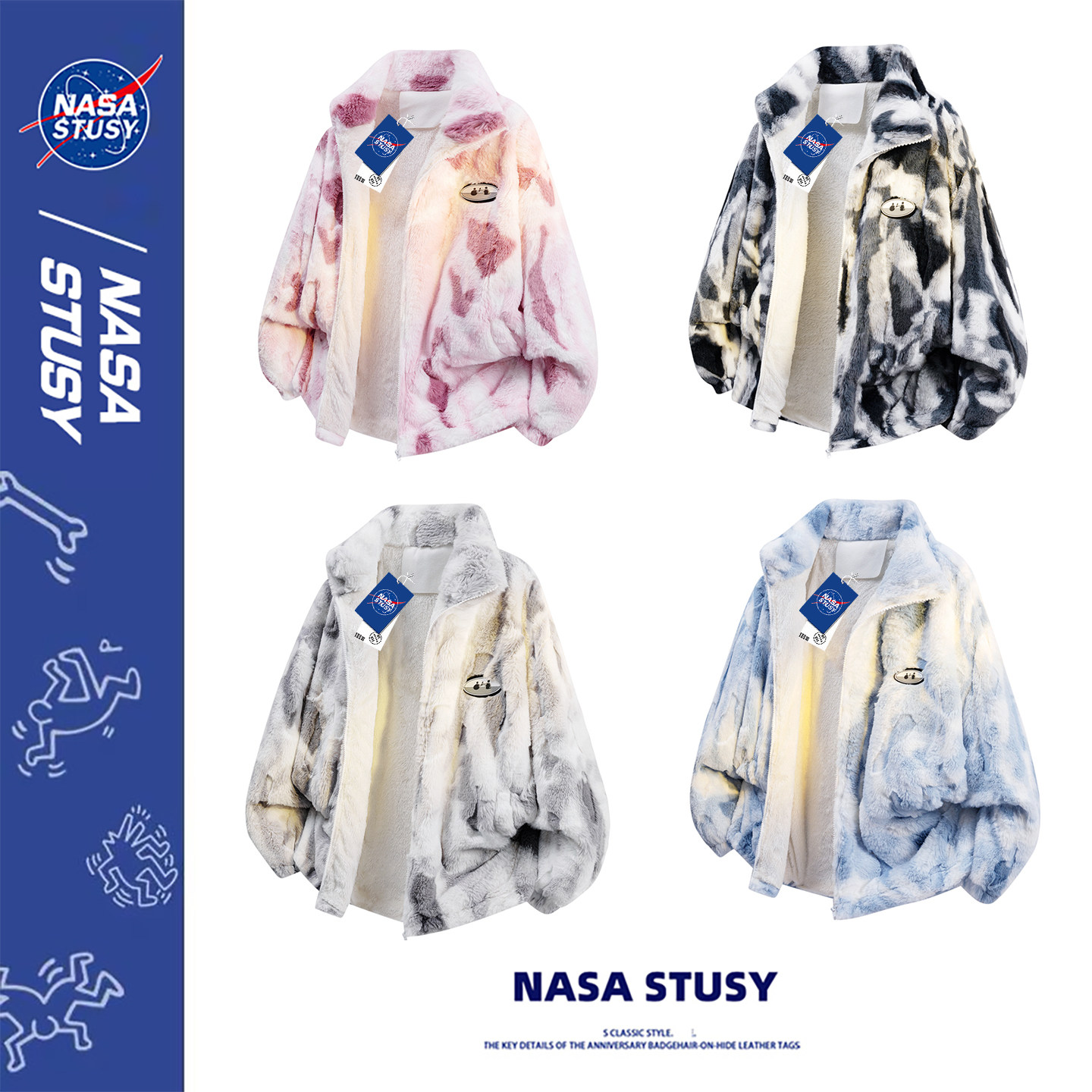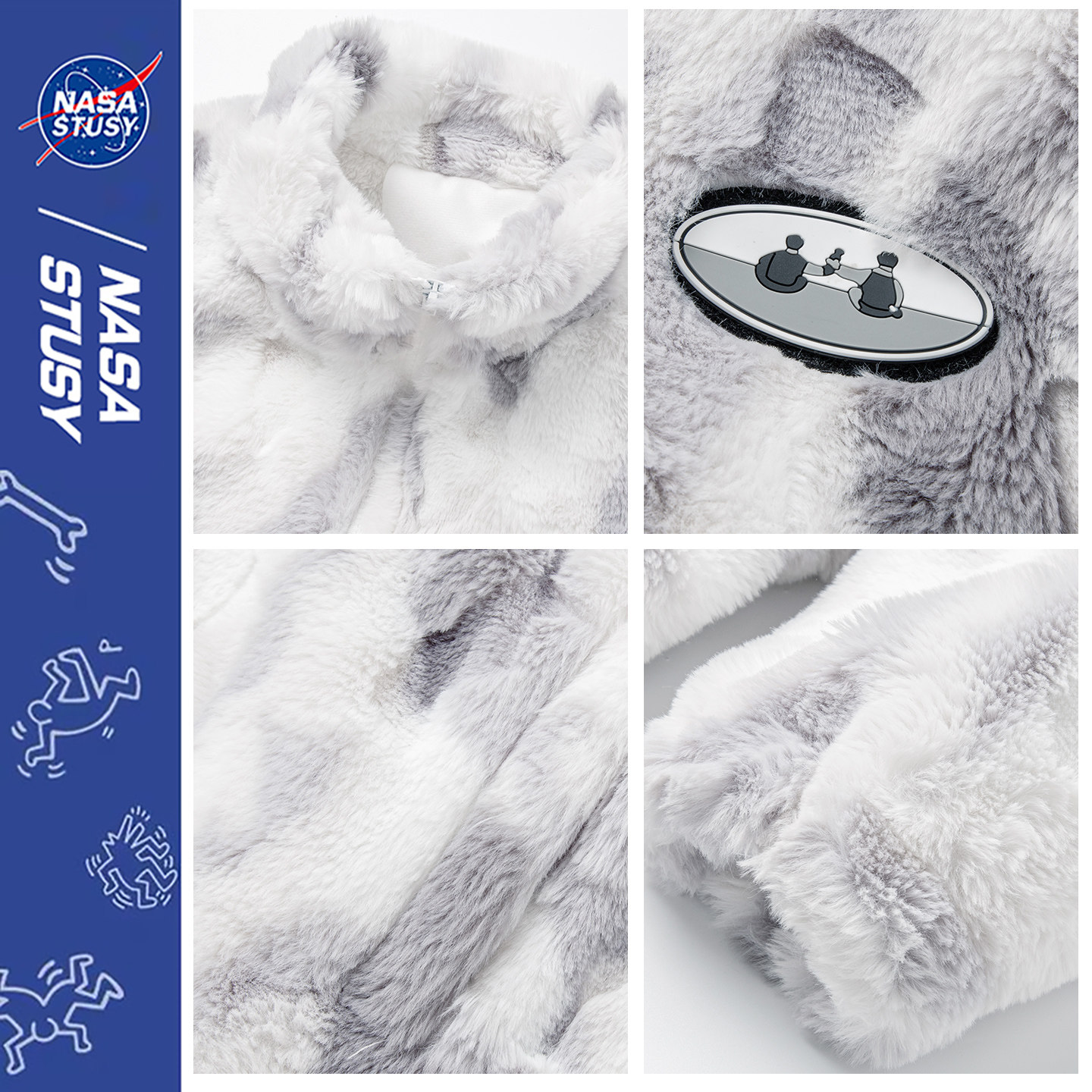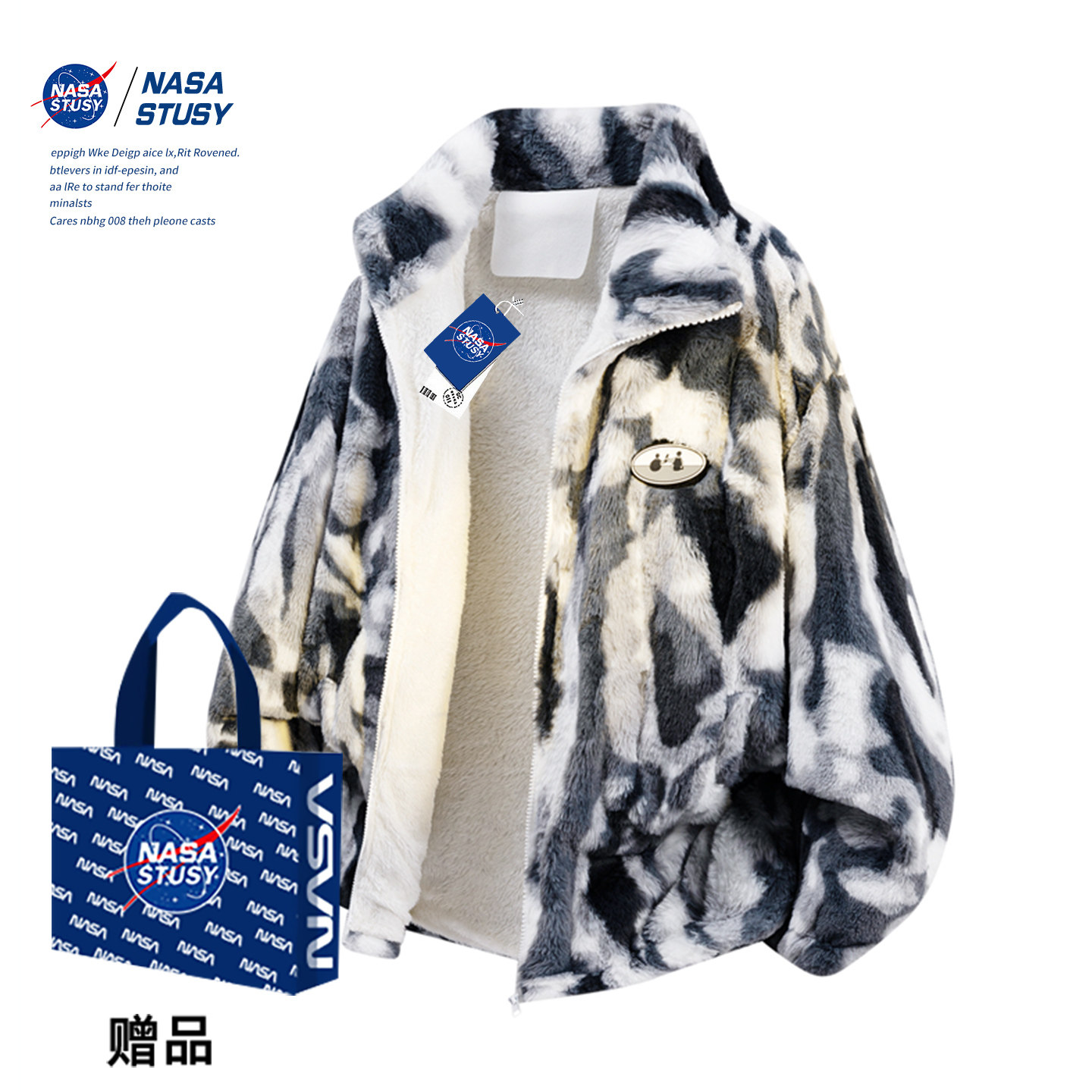 NASA STUSY美式2025冬季加厚加绒羊羔绒棉衣男款棉袄羽绒棉服外套