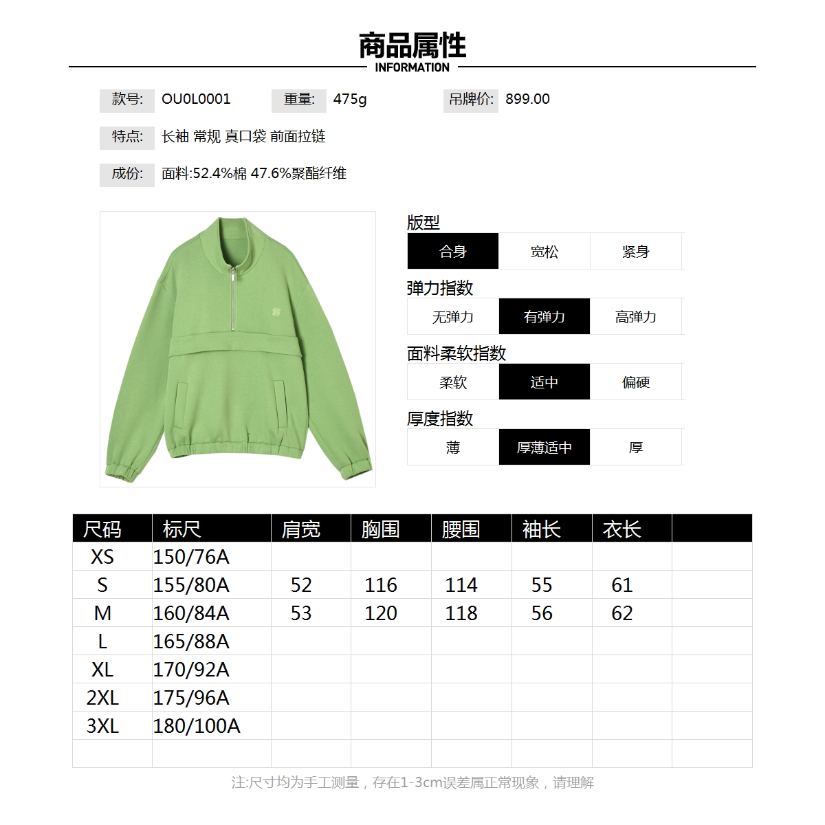 奥莱专柜品牌撤柜正品 OU春装新款 运动风长袖阔版上衣微弹卫衣女