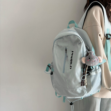 大容量旅游双肩包高颜值初中生高中书包女轻便纯色韩版电脑背包