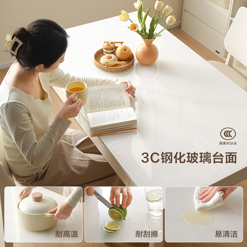 全友家居2025新款奶油风客厅玻璃餐桌家用长方形吃饭实木脚餐桌