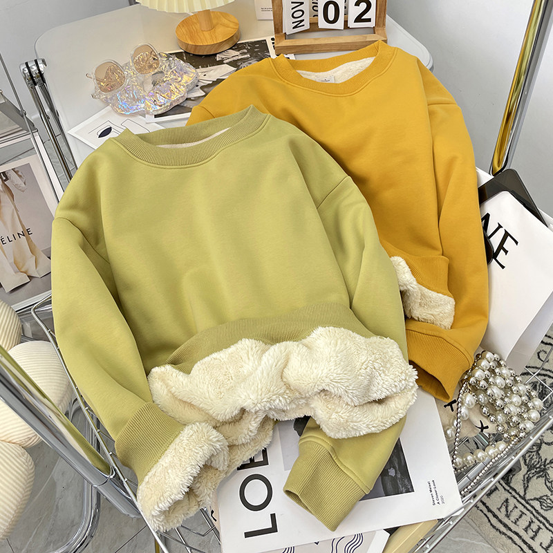 套头羊羔绒卫衣女秋冬新款韩版宽松加绒加厚保暖毛茸茸长袖打底衫