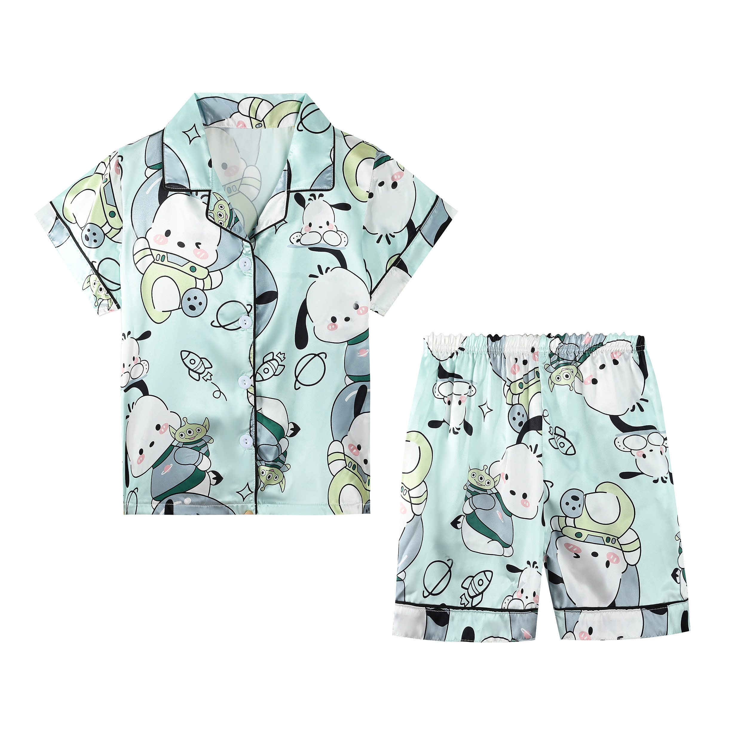 儿童睡衣男童冰丝夏季薄款短袖卡通帕恰狗翻领男孩家居中大童套装