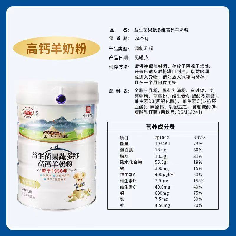 遵义羊奶粉益生菌果蔬多维高钙/中老年羊奶粉600g罐装正宗老品牌