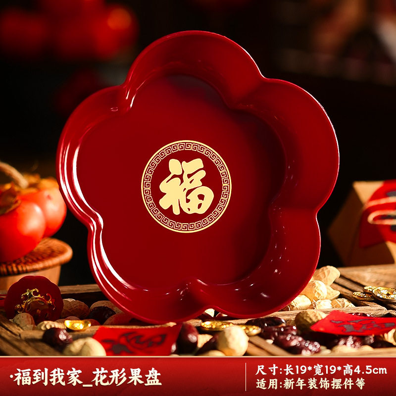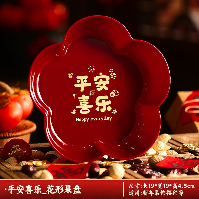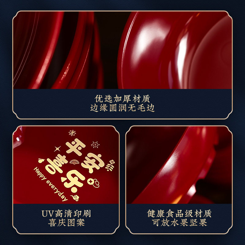 新年果盘4个过年零食糖果家用干果红托盘客厅茶几收纳盒春节