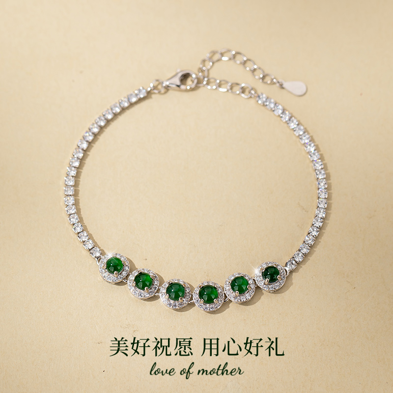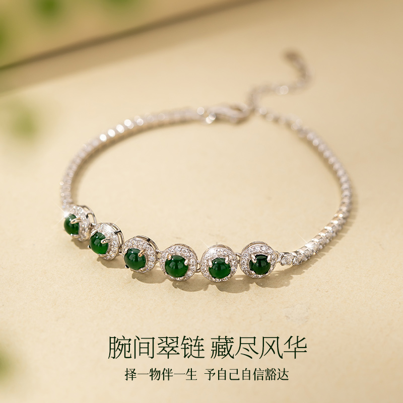 天然危料冰种翡翠S925银手链女生款轻奢小众精致手饰生日礼物女生