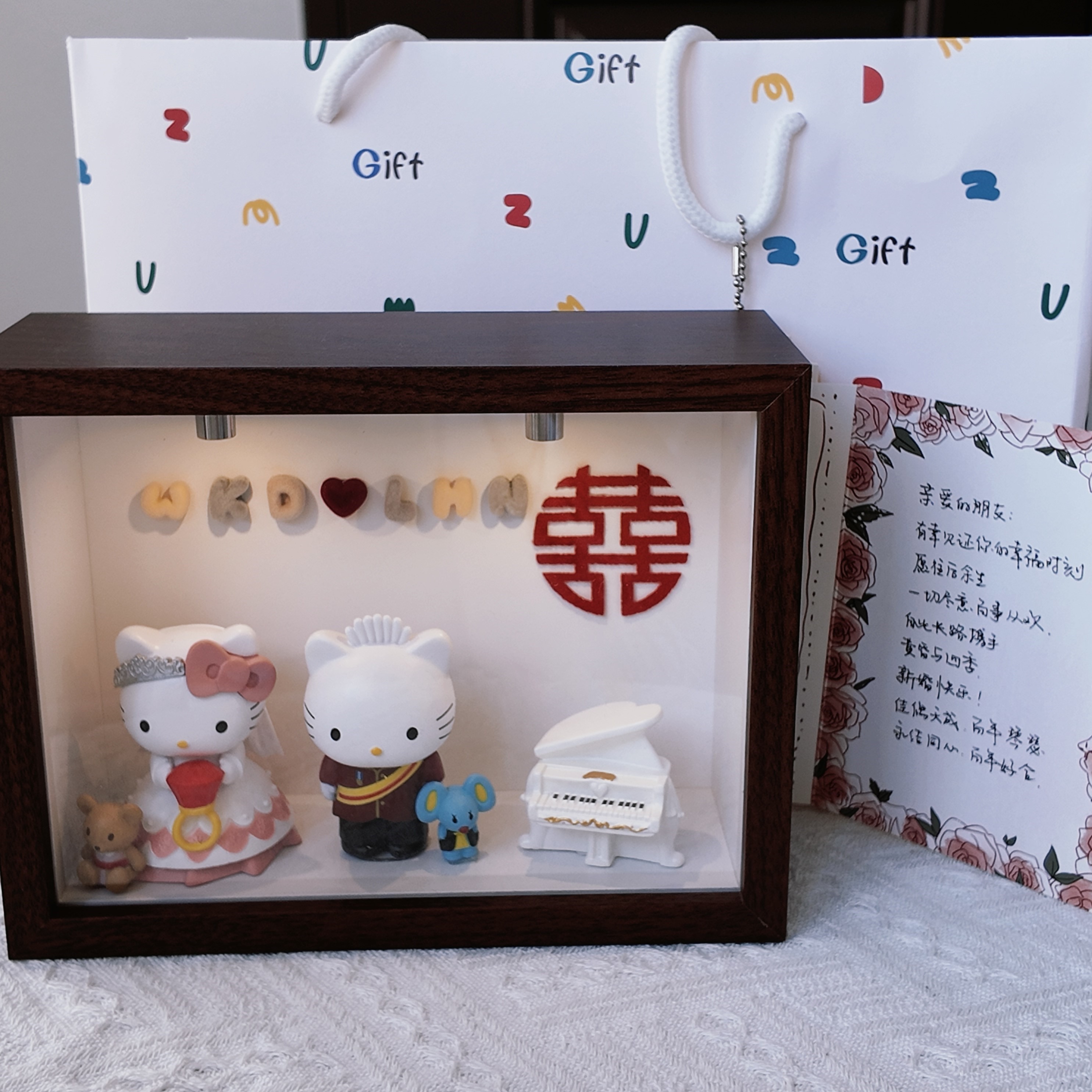 喜字相框kt公仔摆件送朋友新婚礼