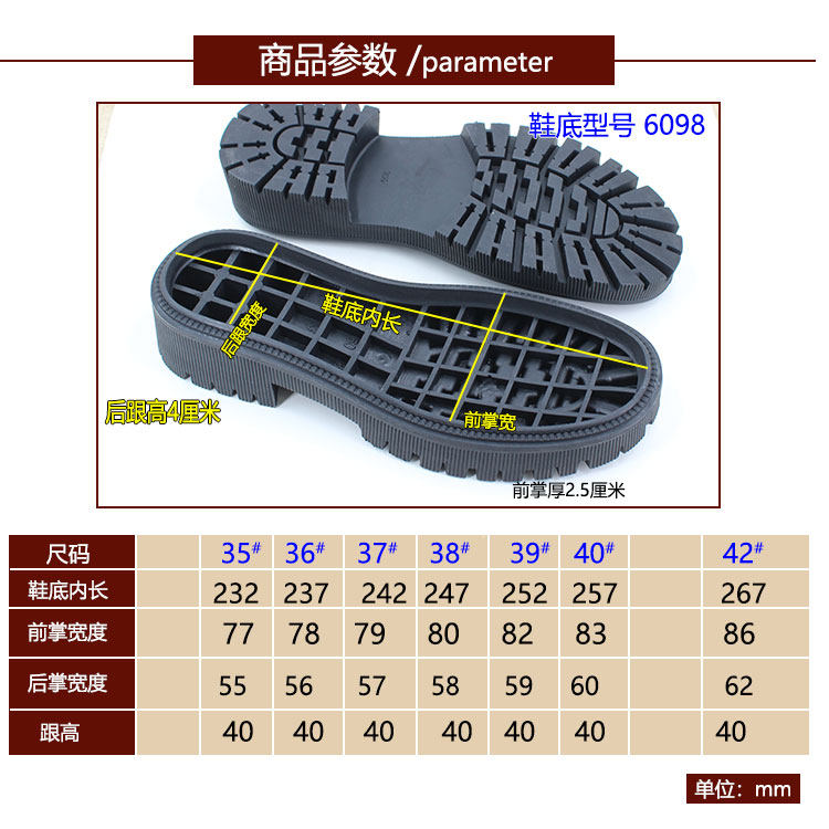 女款马丁靴橡胶鞋底防滑底胶粘冬季短靴换底修鞋材料手工6098