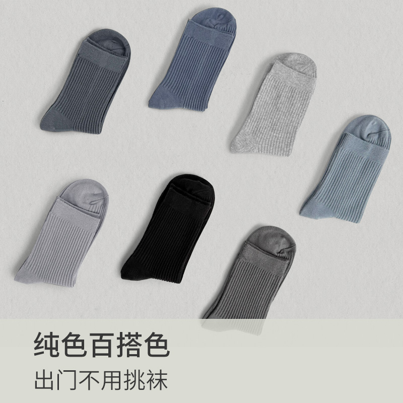 男式双针纯色中筒袜吸汗透气