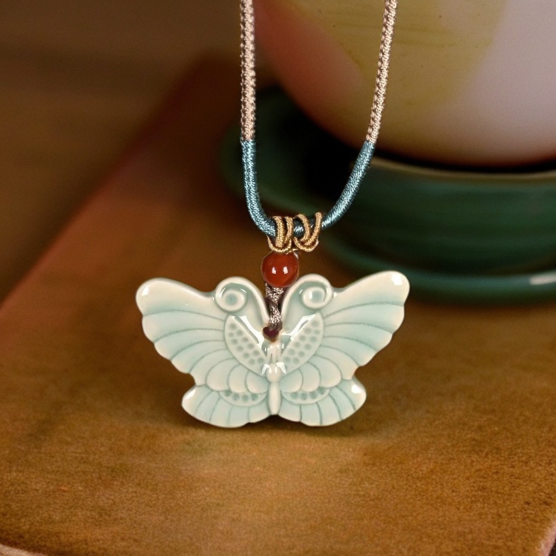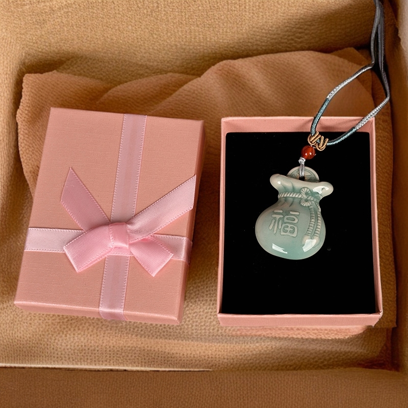 精品青瓷项链复古百搭手工挂饰挂件创意陶瓷瓷片毛衣链饰品女礼物