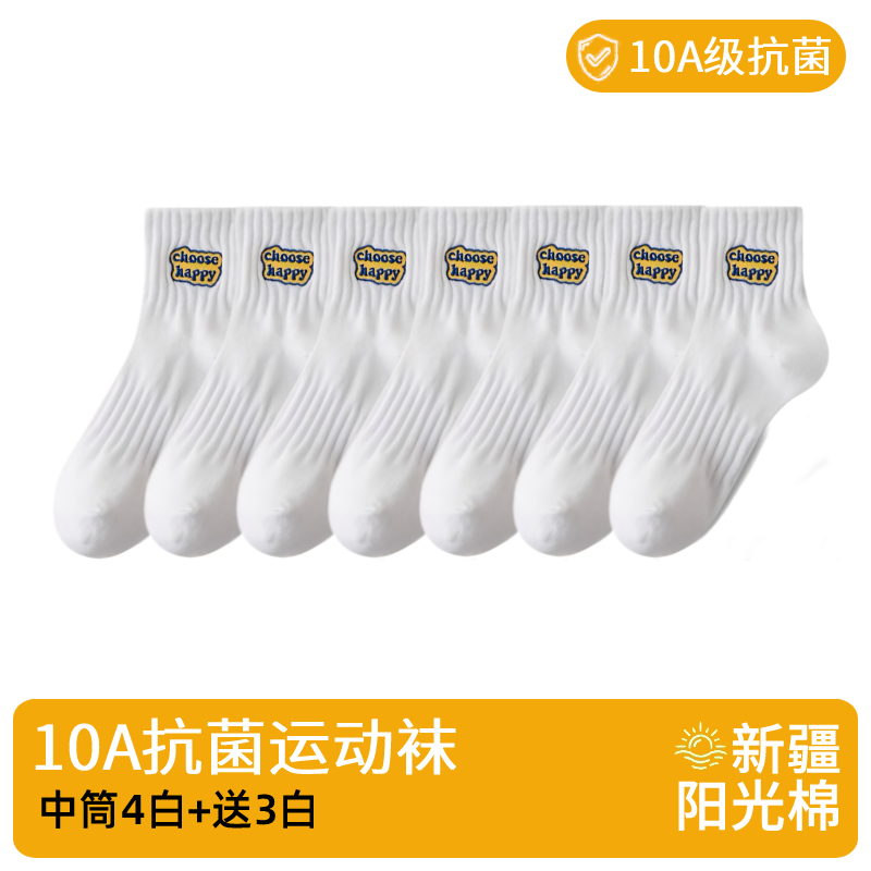 【送3双同款】10A抗菌刺绣纯棉袜子男士秋冬厚款中筒袜女抑菌防臭