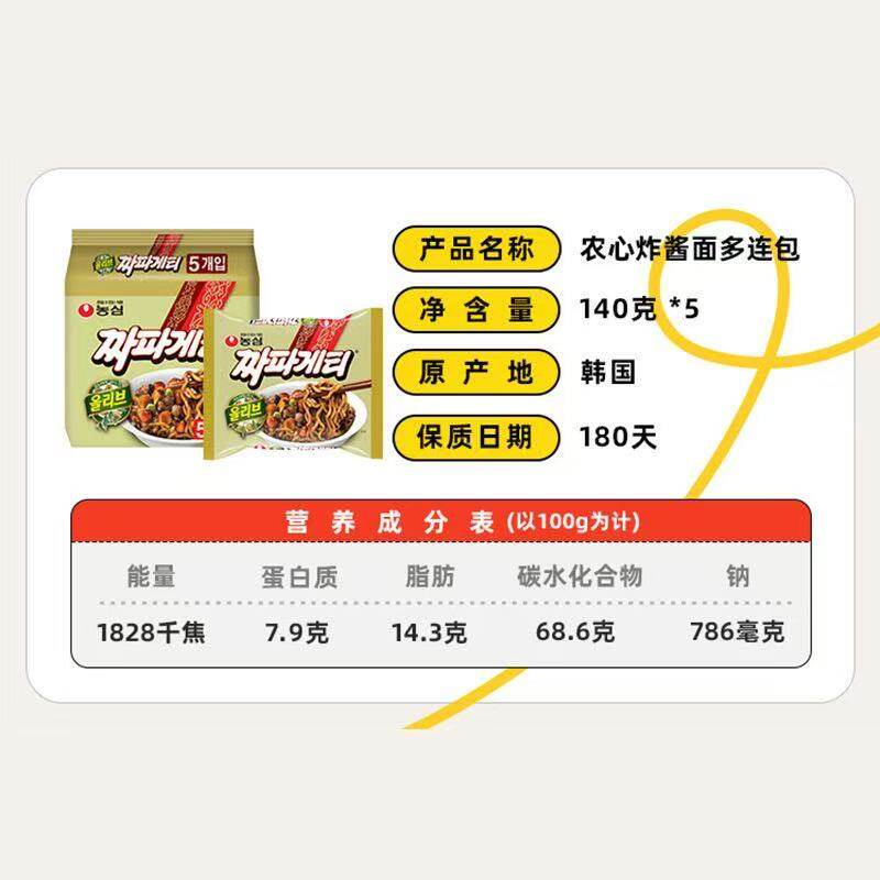 韩国进口正宗农心炸酱面韩式甜辣拌面方便面袋装泡面速食