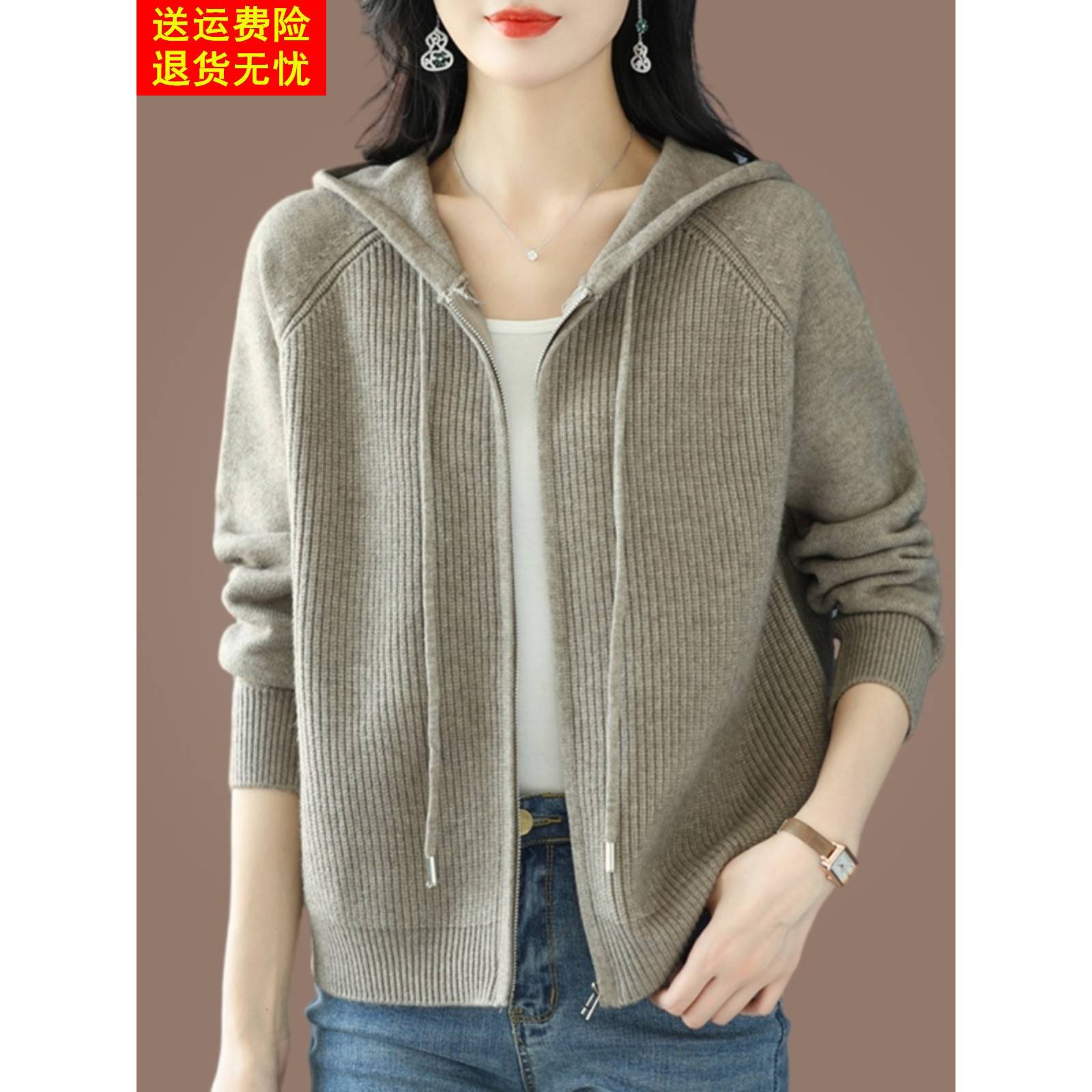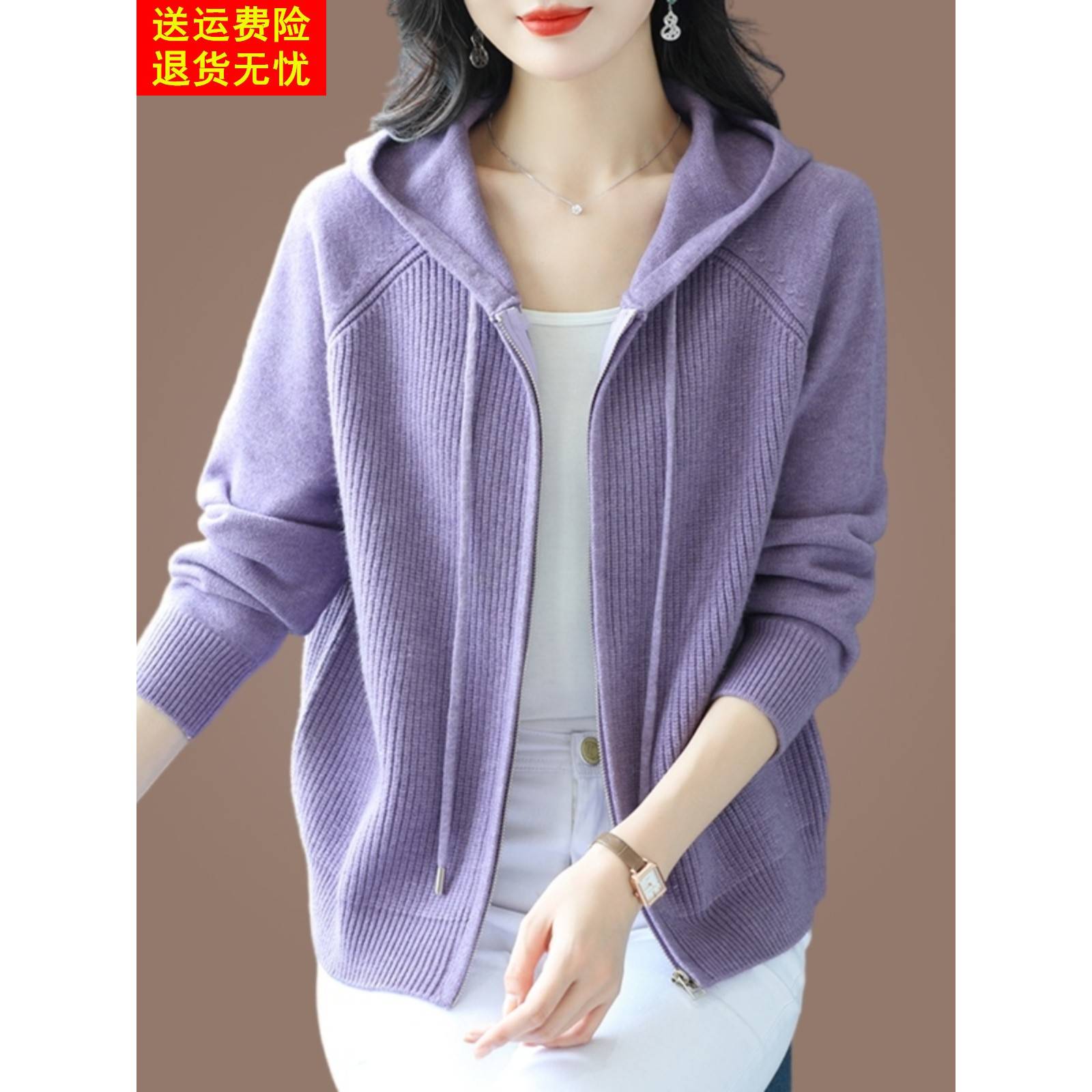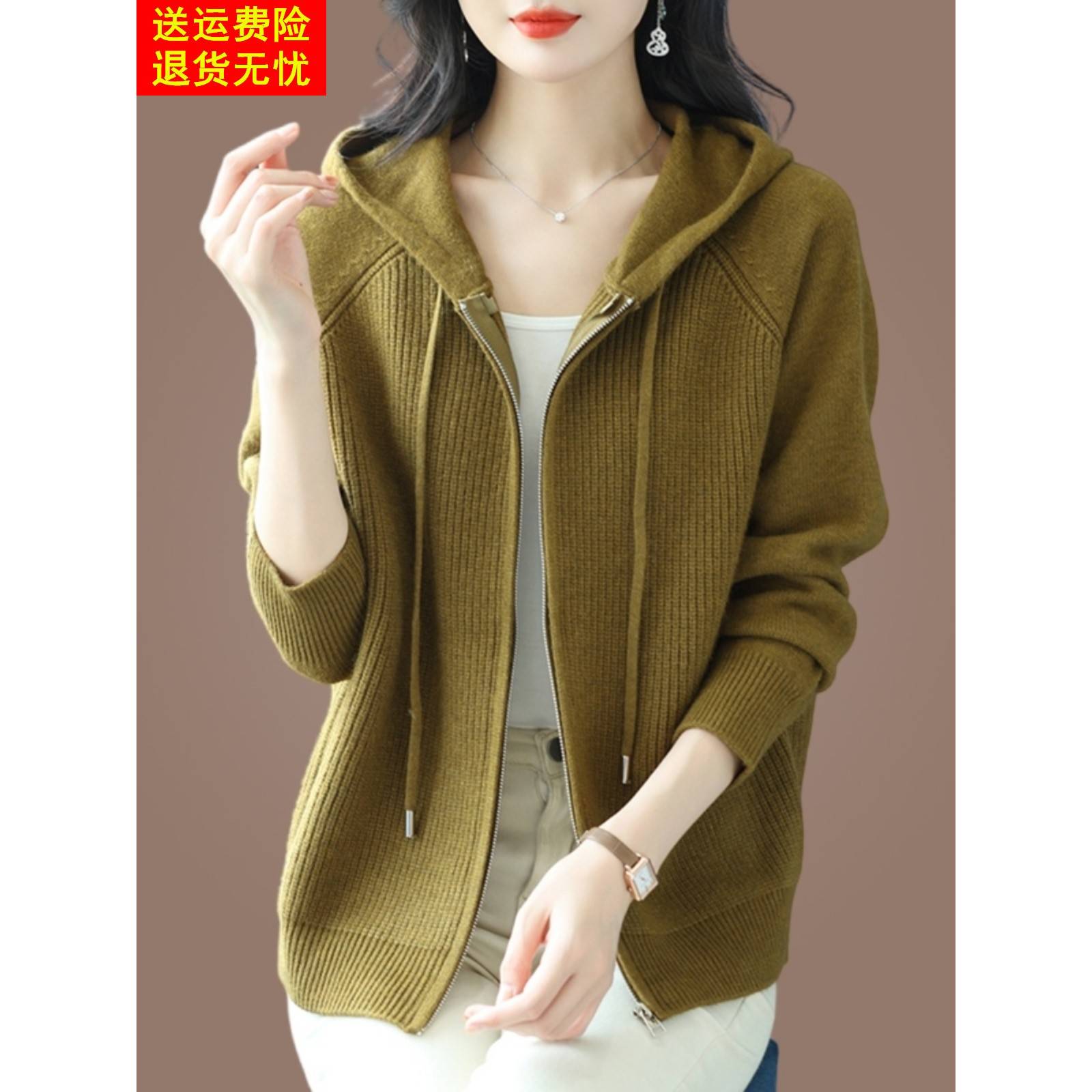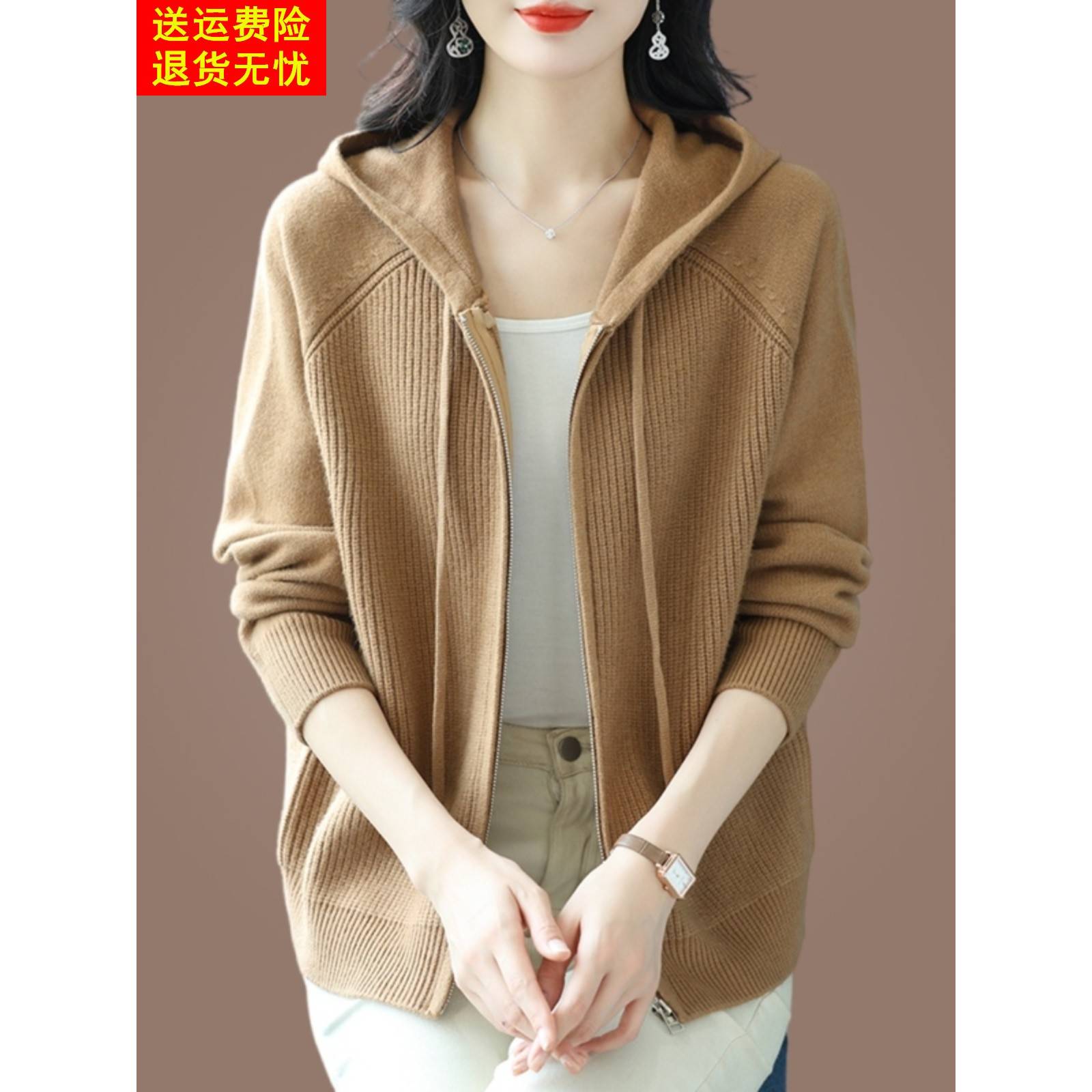 连帽针织羊毛衫外套女妈妈2025新款秋冬时尚宽松大码外搭毛衣开衫