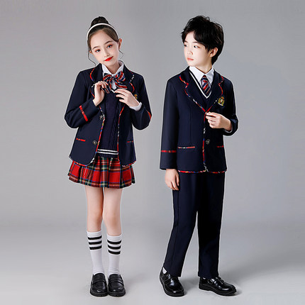 小学生校服春秋装英伦夏季长袖套装秋冬季马甲儿童班服幼儿园园服