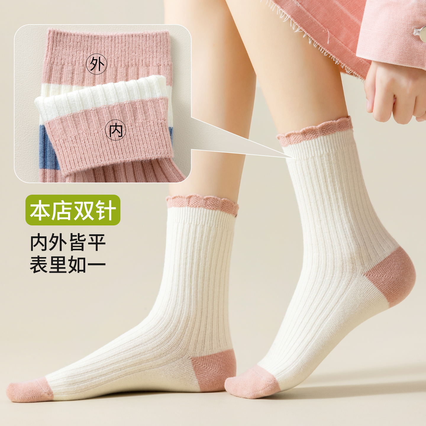 袜子女纯棉双针高弹不嘞学生长袜