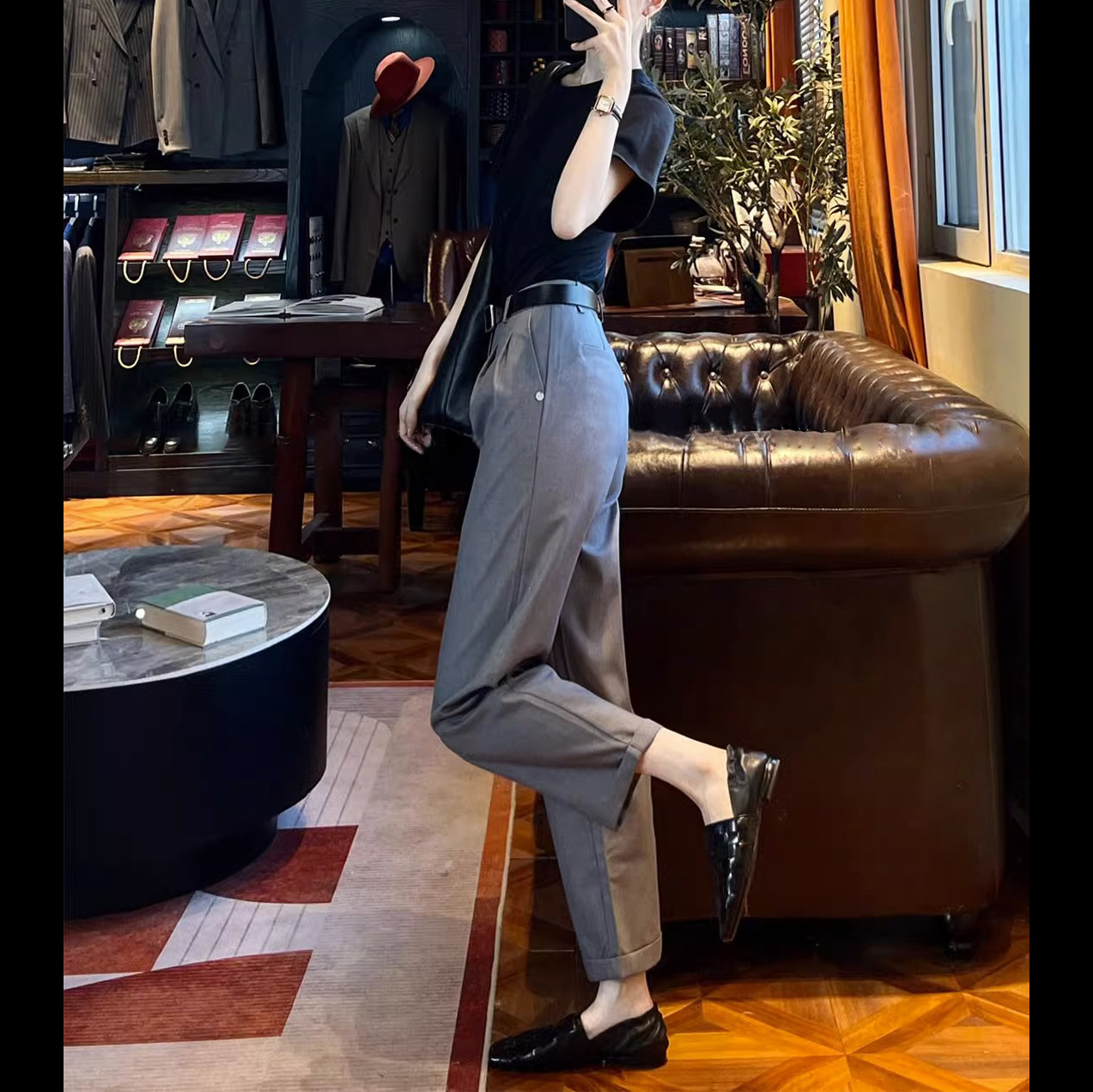 秋季高级感韩国干练气质灰色女裤子高腰显瘦九分裤西装裤小直筒裤