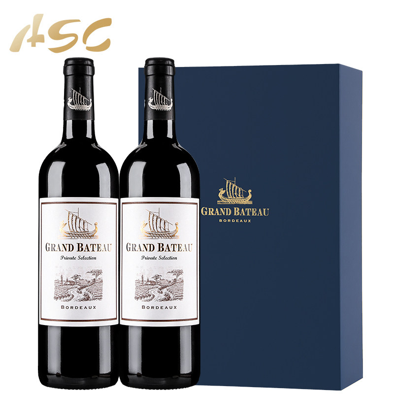 ASC法国进口红酒小龙战舰珍选波尔多干红葡萄酒2支礼盒装送礼