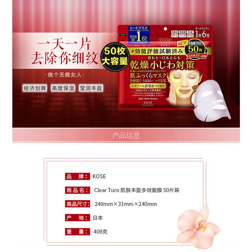 日本直邮高丝KOSE肌肤丰盈多效面膜50片装保湿补水养肤滋润正品