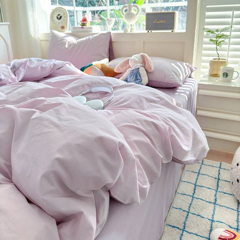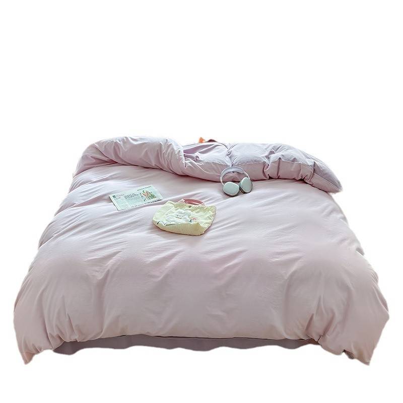 磨毛纯色水洗棉四件套学生床上三件套双拼床单被套工厂 贸易