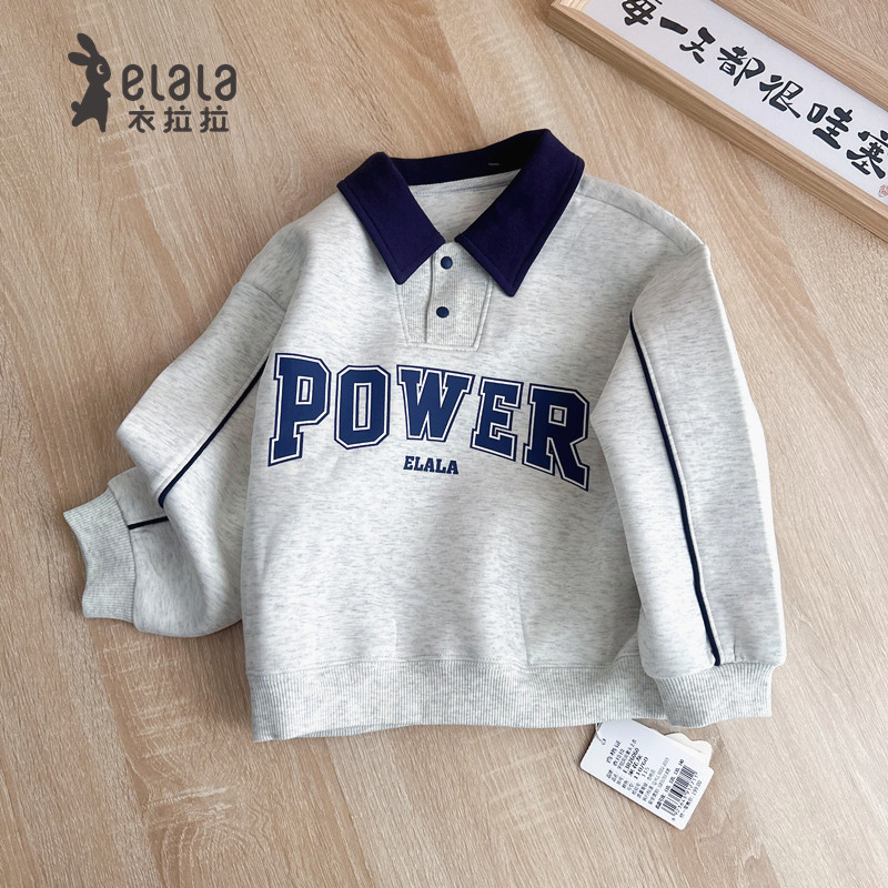 衣拉拉瑁恩瑁爱秋季新款男童秋衣翻领POLO长袖套头卫衣上衣空气层